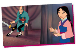 —¿Por qué tiene que irse mi padre a la guerra? —le preguntó a su abuela—. Si no va, sólo será un soldado menos, ¡el emperador ni se enterará! En cambio, si se muere…, ¡será una gran pérdida para nuestra familia! —siguió Mulán, suspirando.