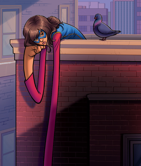 —Bueno, supongo que lo mejor será que regrese a casa —piensa en voz alta Ms. Marvel.