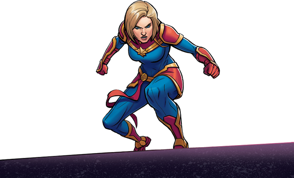 —¡Brillante! ¡Yo te sigo! —exclama la Capitana Marvel.