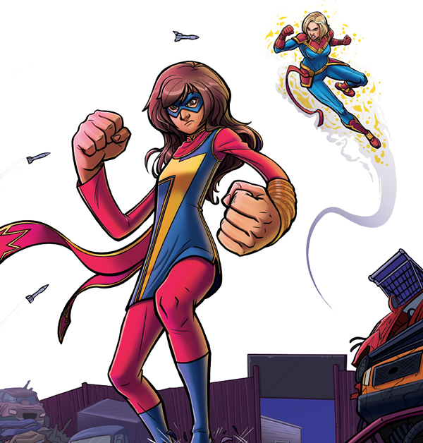 Desde ese momento, Kamala Khan se convirtió en Ms. Marvel, guardiana de Jersey City, azote de los delincuentes y protectora de las tiendas del barrio. Ahora, la nueva superheroína patrulla y vigila las calles de su ciudad.