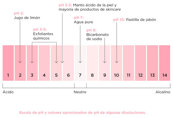 Los productos de uso rutinario tendrán, por lo general, pH equilibrados en torno a 5.5, mientras que algunos productos de uso más o menos puntual (como los ácidos que se emplean en exfoliantes químicos: glicólico, láctico, salicílico…) o activos como la vitamina C pura pueden formularse con pH más ácidos con el fin de buscar ciertos beneficios o hacerlos más estables. Sin embargo, el uso continuado de productos con pH extremos, como los extremadamente ácidos, pero sobre todo aquellos muy alcalinos, puede estar desaconsejado en algunos casos, puesto que podrían alterar demasiado el pH del manto ácido y resultar a largo plazo en problemas en la piel. Este es el caso de algunos remedios caseros, como la aplicación de jugo de limón o bicarbonato sobre la piel, ya que tienen, respectivamente, un pH muy ácido y muy alcalino. Conocer estos datos sobre el pH y la piel es un muy buen comienzo en la búsqueda de una piel más sana.