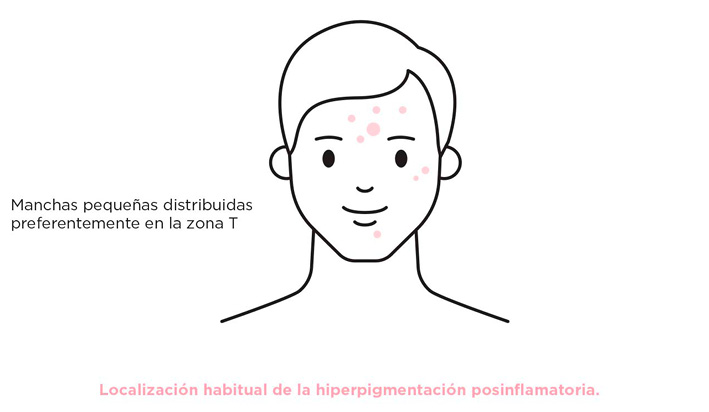 Como su nombre indica, son las manchas oscuras en la piel que se producen como consecuencia de un proceso inflamatorio; un ejemplo son las manchas que dejan tras de sí las lesiones de acné (granitos) al desaparecer. Otros de los procesos inflamatorios que causan hiperpigmentación posinflamatoria (HPPI) son la psoriasis, el eczema, la dermatitis, las reacciones fotoalérgicas o fototóxicas y los traumas (tras una herida, una cirugía, etc.). La HPPI imita la forma y la extensión de la lesión y tiene un tono que puede variar entre café, rojizo o grisáceo. Puede darse indistintamente en hombres y mujeres, y afecta tanto al rostro como al cuerpo, en especial, a las zonas expuestas a la radiación UV. Es muy frecuente en los tonos más oscuros de piel.