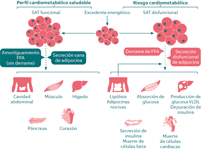 La gran pregunta que siempre me hacen mis pacientes es por qué sucede esto. ¿Cuáles son los mecanismos biológicos por los cuales el exceso de grasa corporal en el abdomen nos pone en desventaja y arruina nuestro metabolismo? Si bien el conocimiento médico se expande geométricamente todos los días para ayudar a que los profesionales de la salud comprendamos los motivos, la explicación en términos sencillos es que el exceso de grasa alrededor de nuestro abdomen puede «derramarse» hacia órganos vitales, como el hígado y el páncreas.