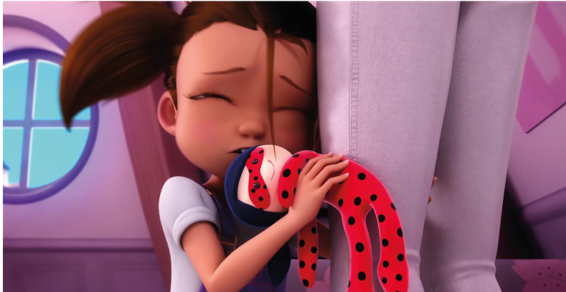 —¡Nunca me dejas jugar con Ladybug y Cat Noir! —solloza la niña.