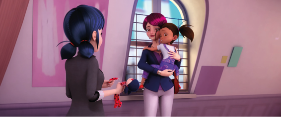 —Bien, ahora debemos irnos. Manon, devuélvele la muñeca a Marinette —dice Nadia.
