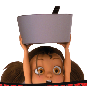 Tras pensar unos instantes, la niña alza a sus tres villanos y los hace hablar a la vez: