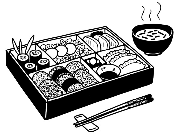La elaboración de bento en Japón siempre ha sido un asunto serio. No se trata simplemente de poner unos sándwiches y una manzana en una bolsa de papel marrón, como sería típico en algunas partes del mundo. Armamos un buen escándalo con la preparación del bento: hay incluso libros dedicados al arte de la preparación del bento. El principio más esencial es preparar varias cosas en pequeñas porciones. El arroz está siempre en el centro, unificando los demás elementos. Puedes sustituir el arroz por los alimentos básicos disponibles en tu supermercado local, como pan, fideos, pasta, tortillas, patatas, cuscús o ugali. Si preparas una variedad de alimentos en pequeñas porciones y los acompañas de arroz o del alimento básico que elijas, habrás reproducido la esencia del kaiseki o shokado. Ahora, todo lo que tienes que hacer es realizar el nagomi a través de tu kounaichoumi (cocina en la boca). La comida dispuesta de esta manera no sólo tiene buen aspecto, sino que los formatos kaiseki y bento también ejemplifican varios principios y beneficios del enfoque nagomi y del método de consumo kounaichoumi. Por un lado, ambos ayudan a conseguir el importantísimo equilibrio nutricional. En segundo lugar, el chef tiene muchas oportunidades de mostrar sus habilidades en una sola sesión. En tercer lugar, la gran diversidad de ingredientes ofrece una gran oportunidad para representar algunos de los diversos tesoros que recibimos de la naturaleza, haciendo que esta cocina típicamente japonesa refleje el entorno en el que vivimos.