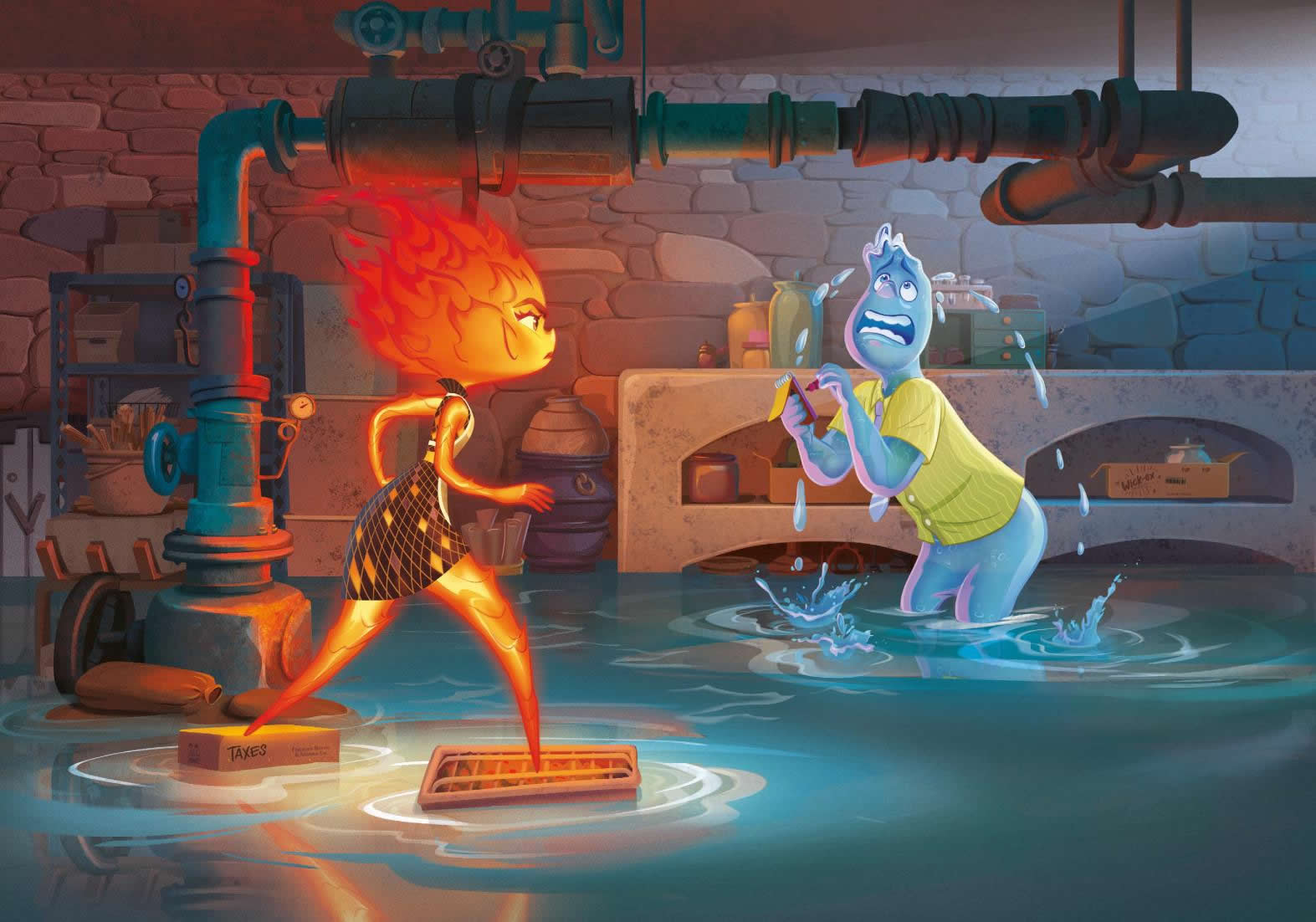 Candela ya no podía más. Corrió al sótano intentando contener su rabia, pero una vez allí, ¡estalló! A su alrededor surgieron llamas que hicieron reventar una tubería de agua. El sótano empezó a inundarse. ¡Estaba desesperada!