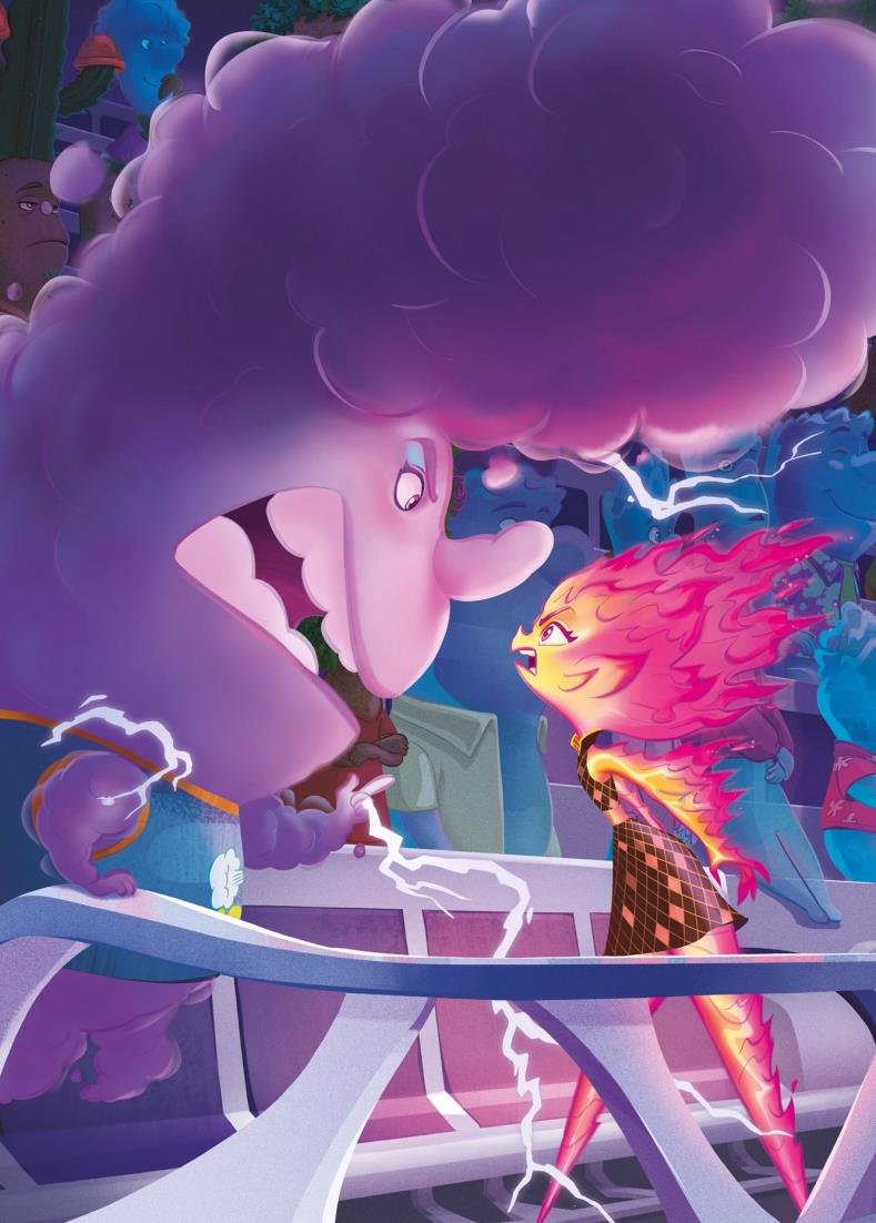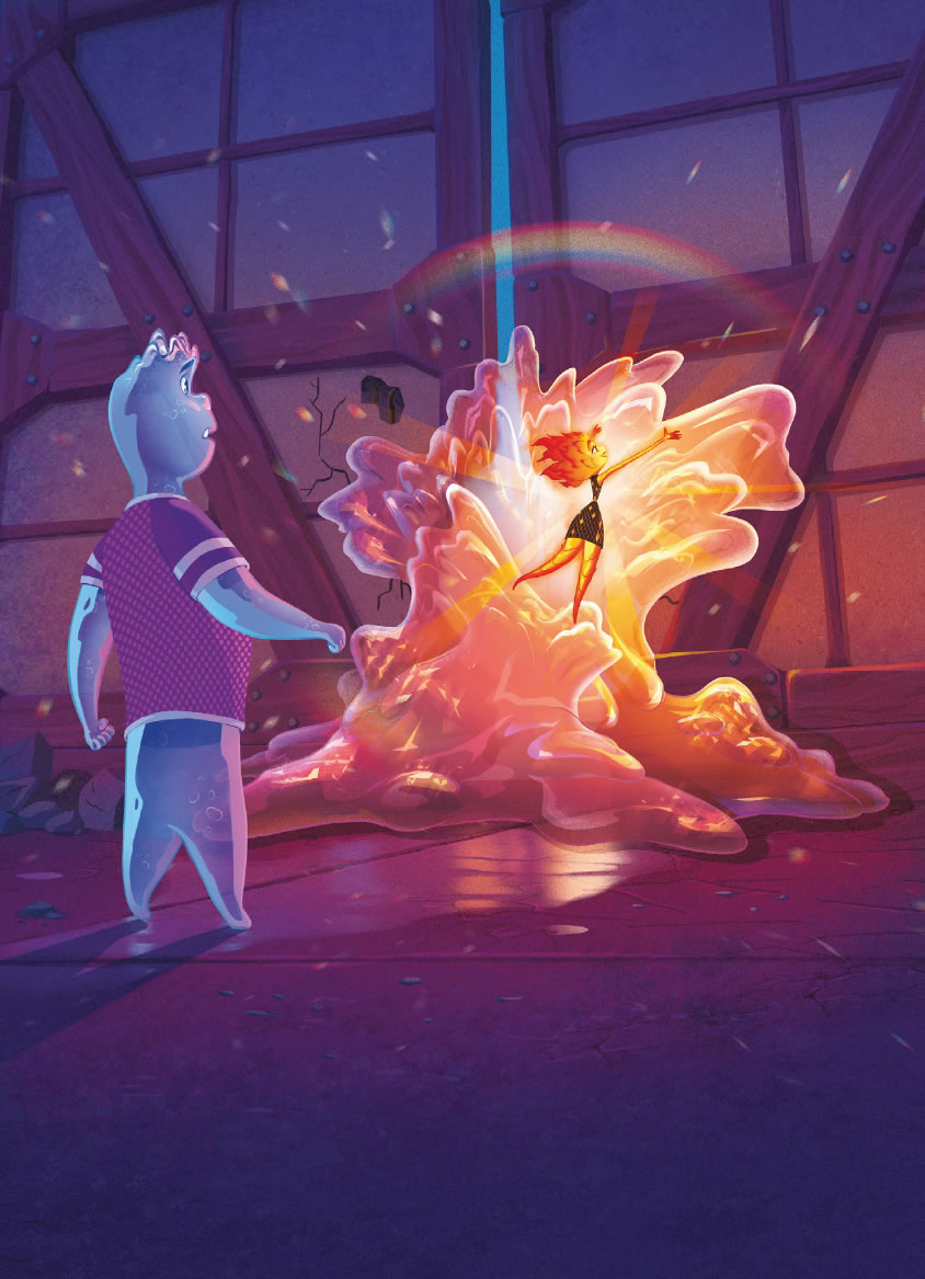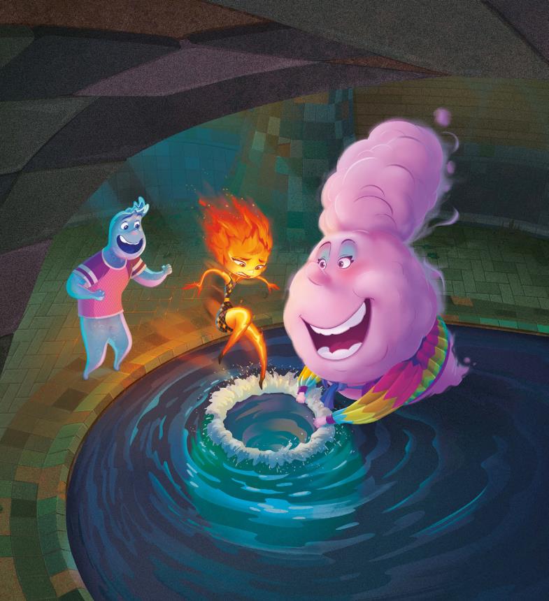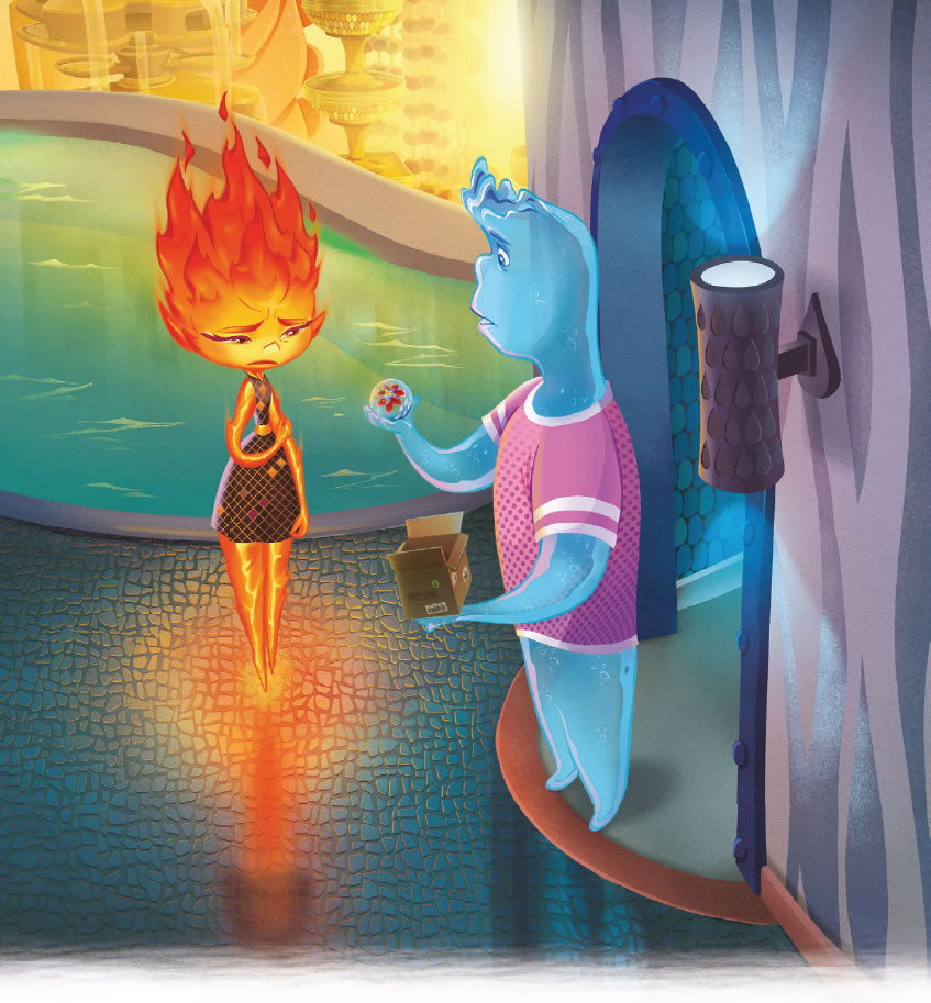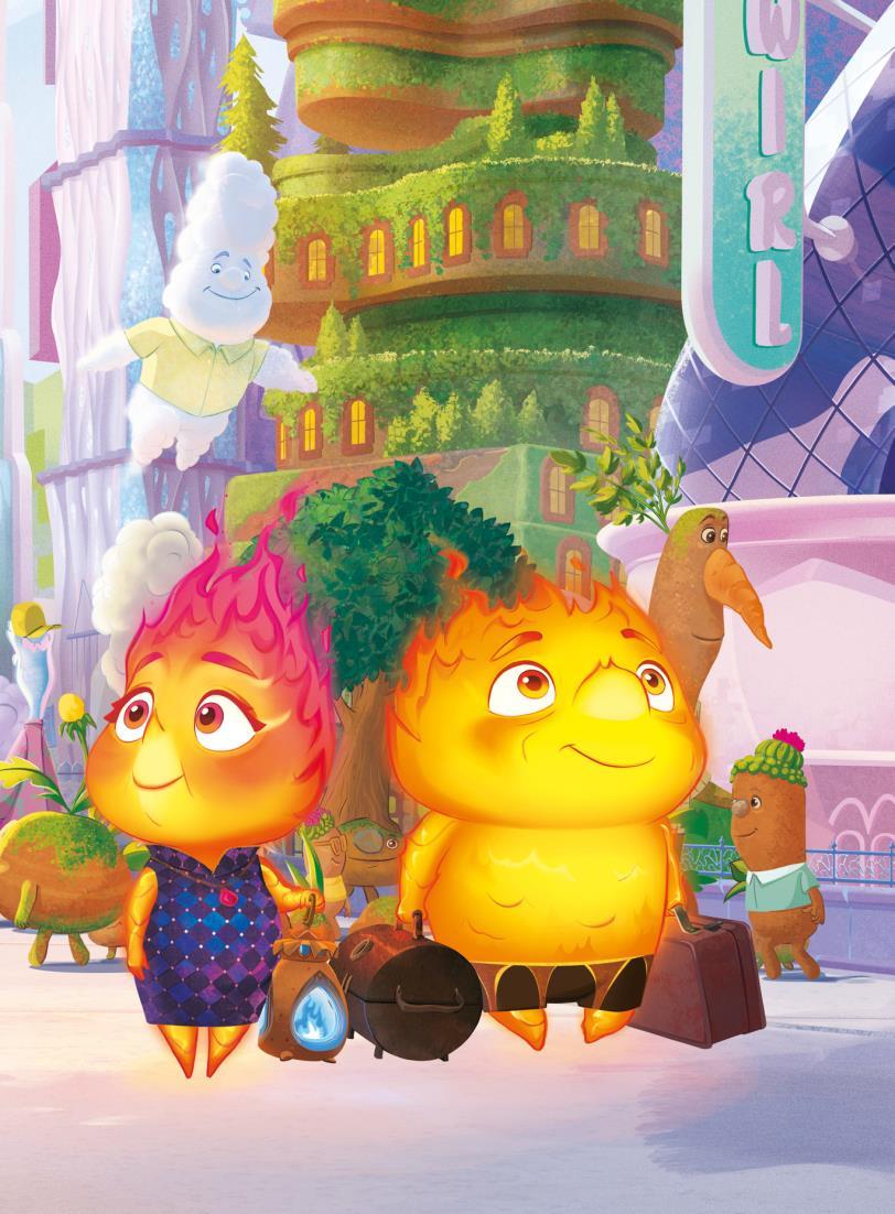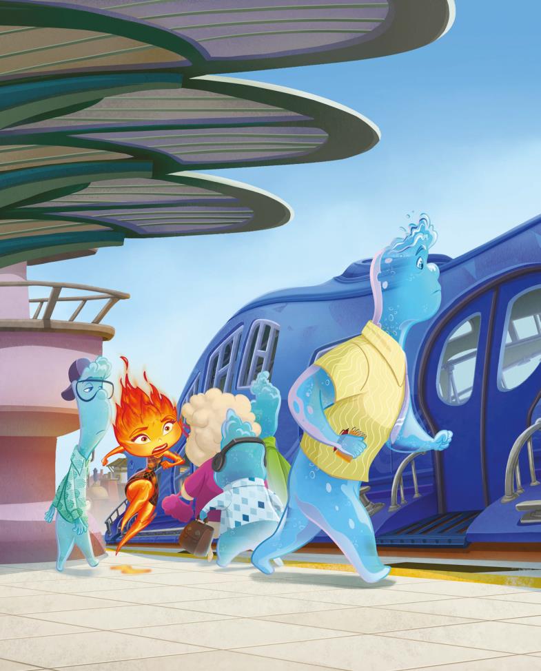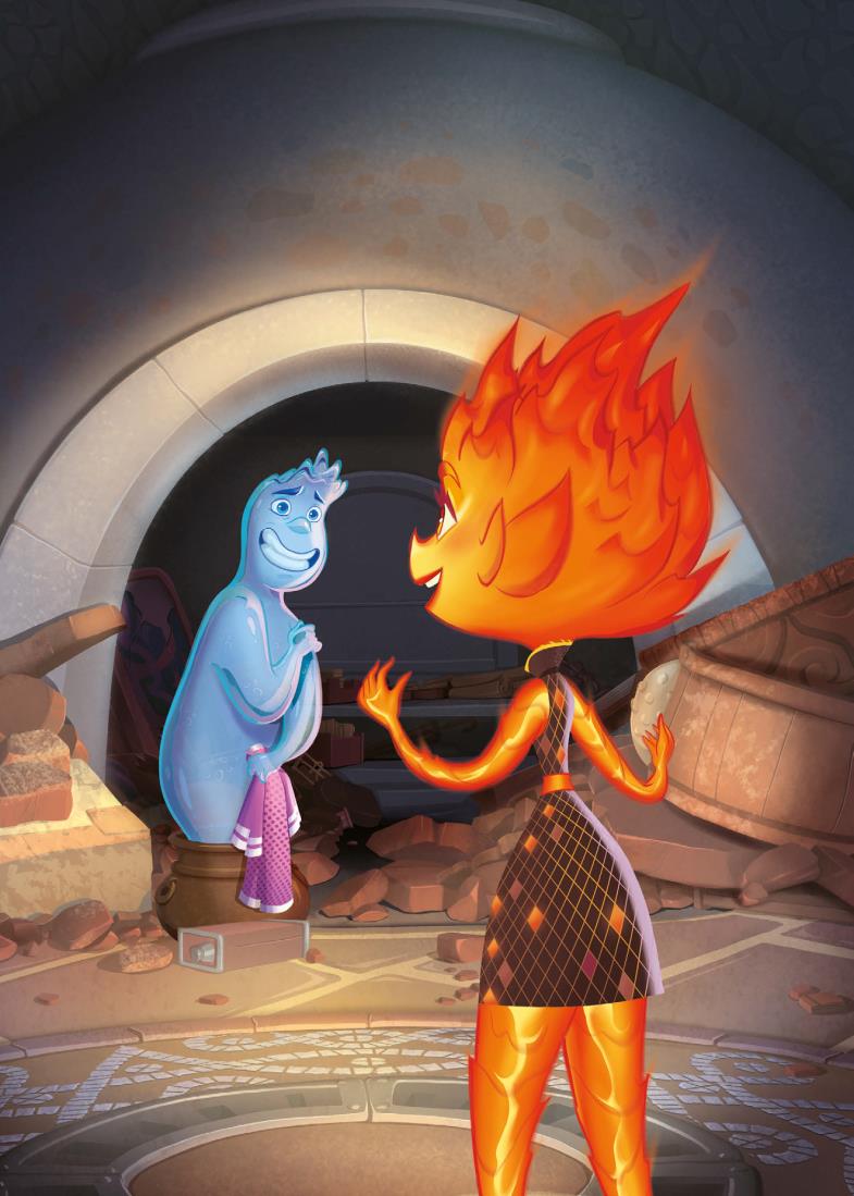 Para ella, todo en la ciudad era nuevo y un poco incómodo. Pero, a medida que iba pasando más tiempo con Nilo, empezó a relajarse y a divertirse. Sorprendió a otros elementos con sus habilidades únicas, se unió a un grupo de baile espontáneo y fue al cine. No sabía que Ciudad Elemento tuviera tanto que ofrecer.
