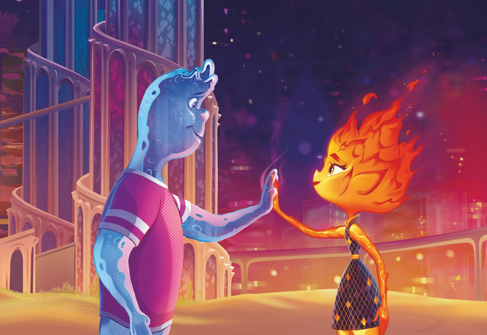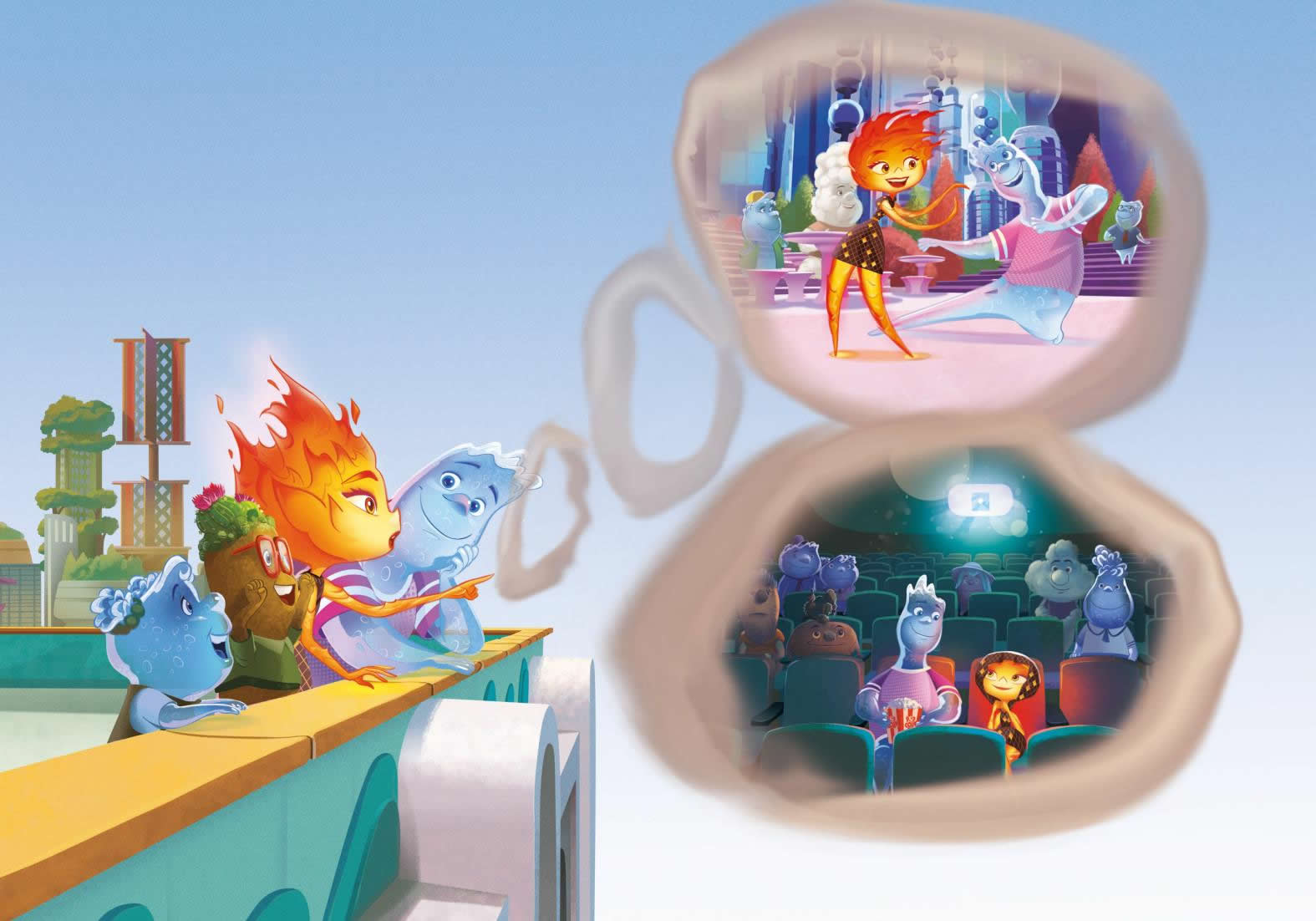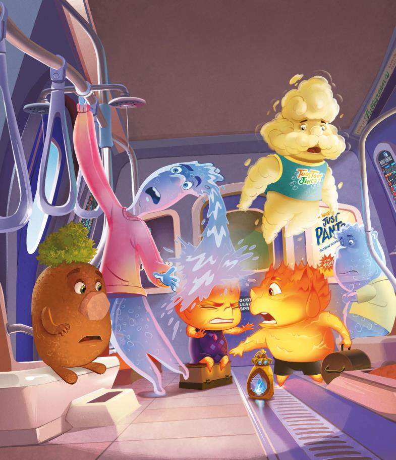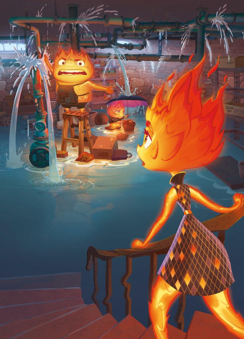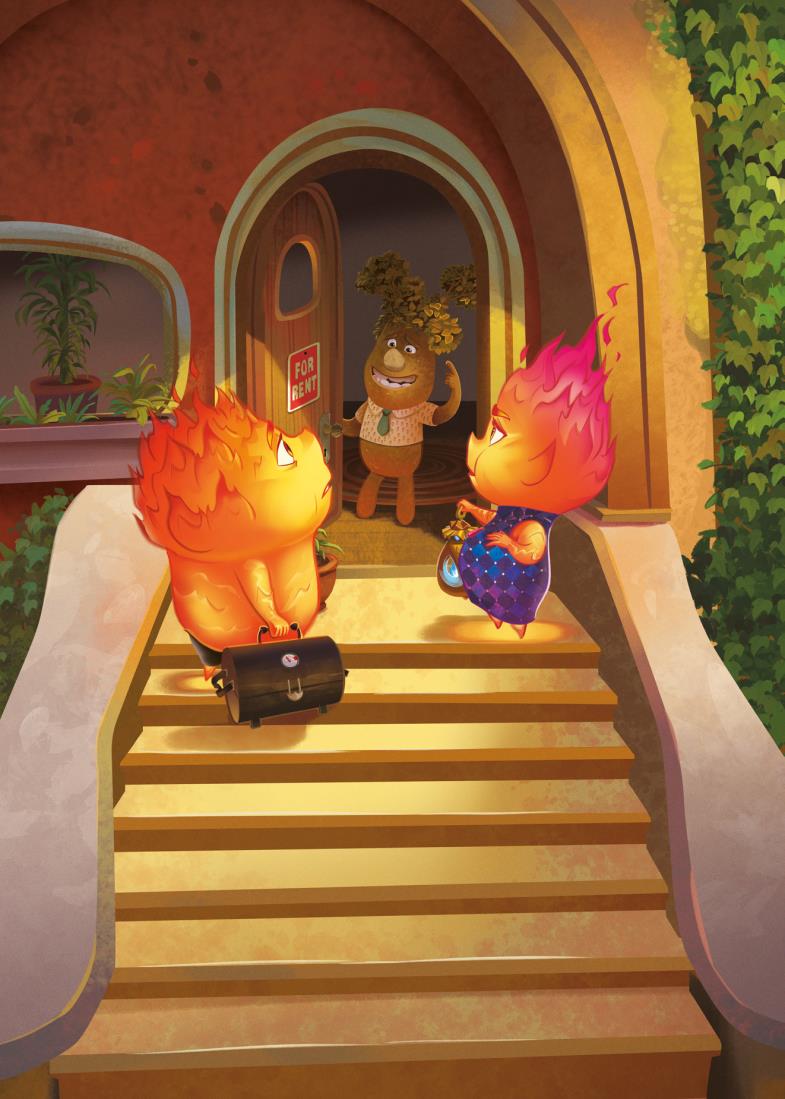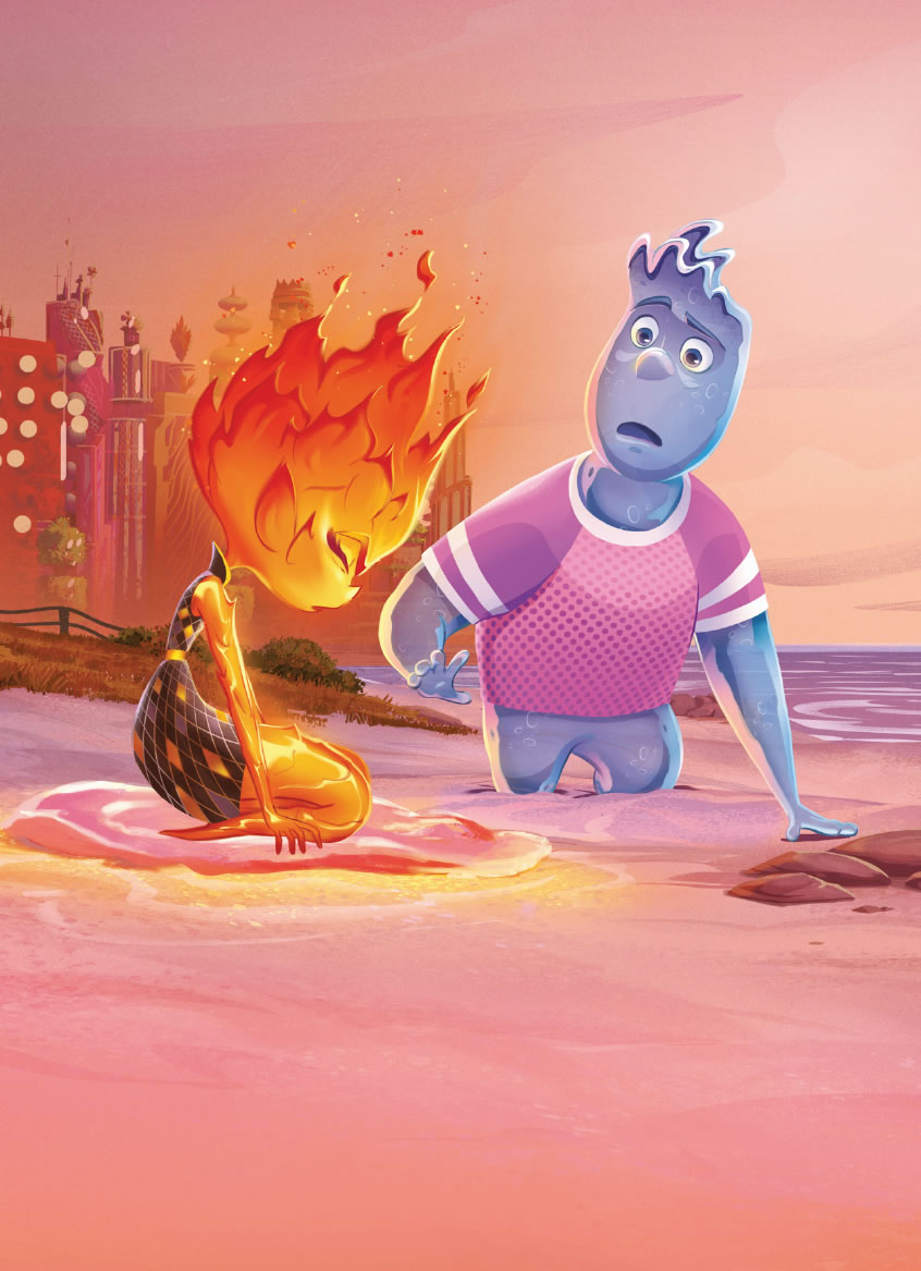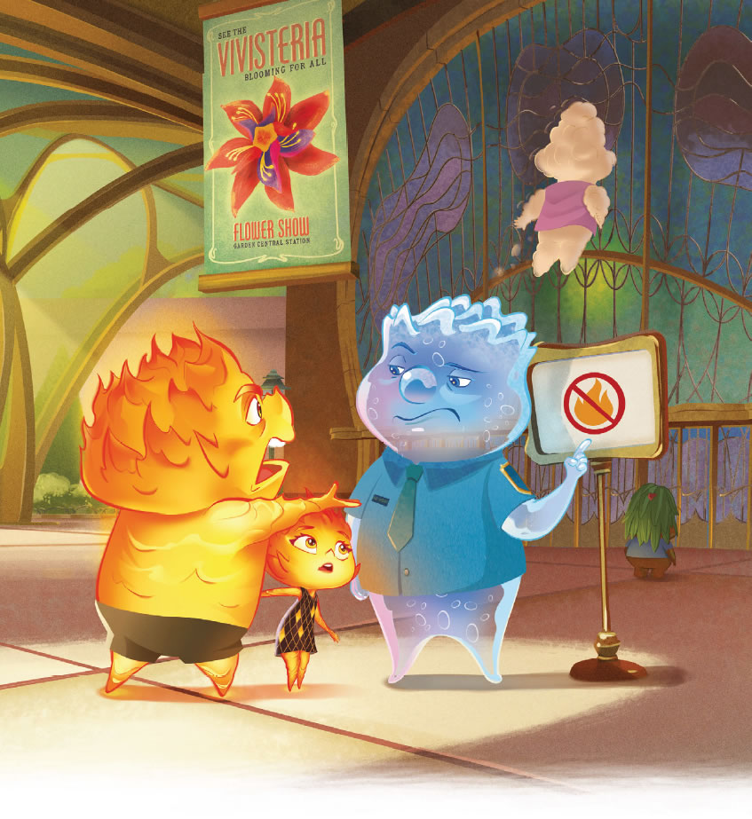 Para ella, todo en la ciudad era nuevo y un poco incómodo. Pero, a medida que iba pasando más tiempo con Nilo, empezó a relajarse y a divertirse. Sorprendió a otros elementos con sus habilidades únicas, se unió a un grupo de baile espontáneo y fue al cine. No sabía que Ciudad Elemento tuviera tanto que ofrecer.
