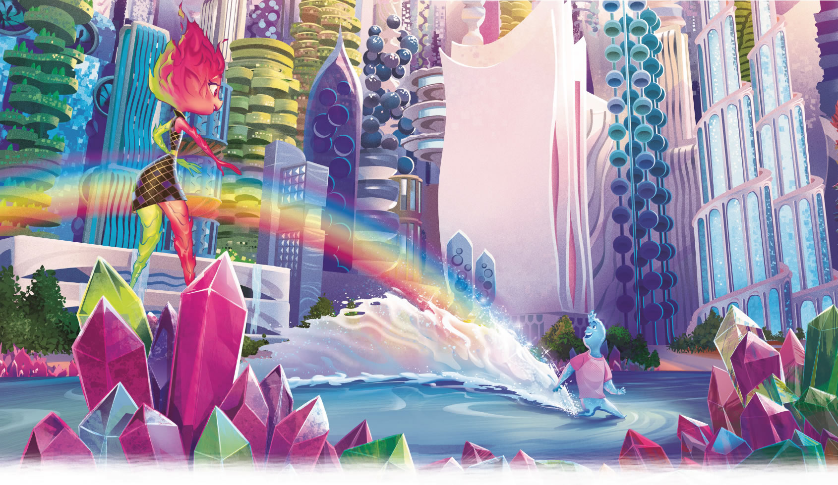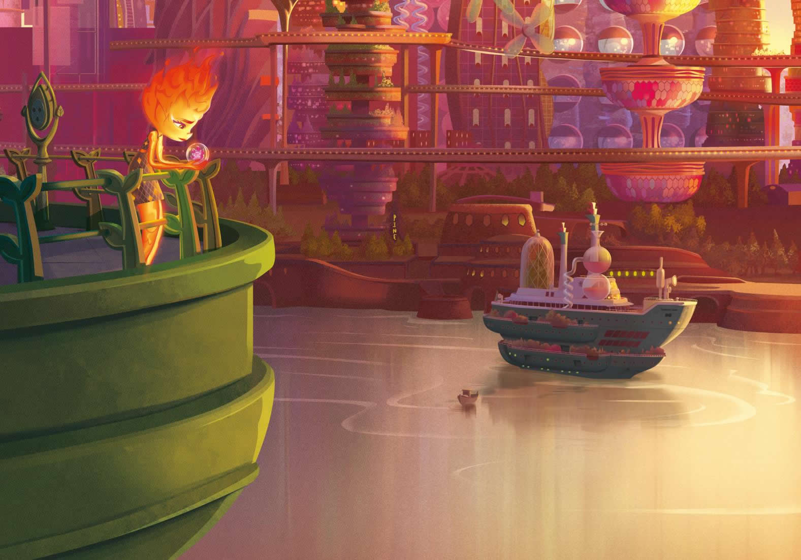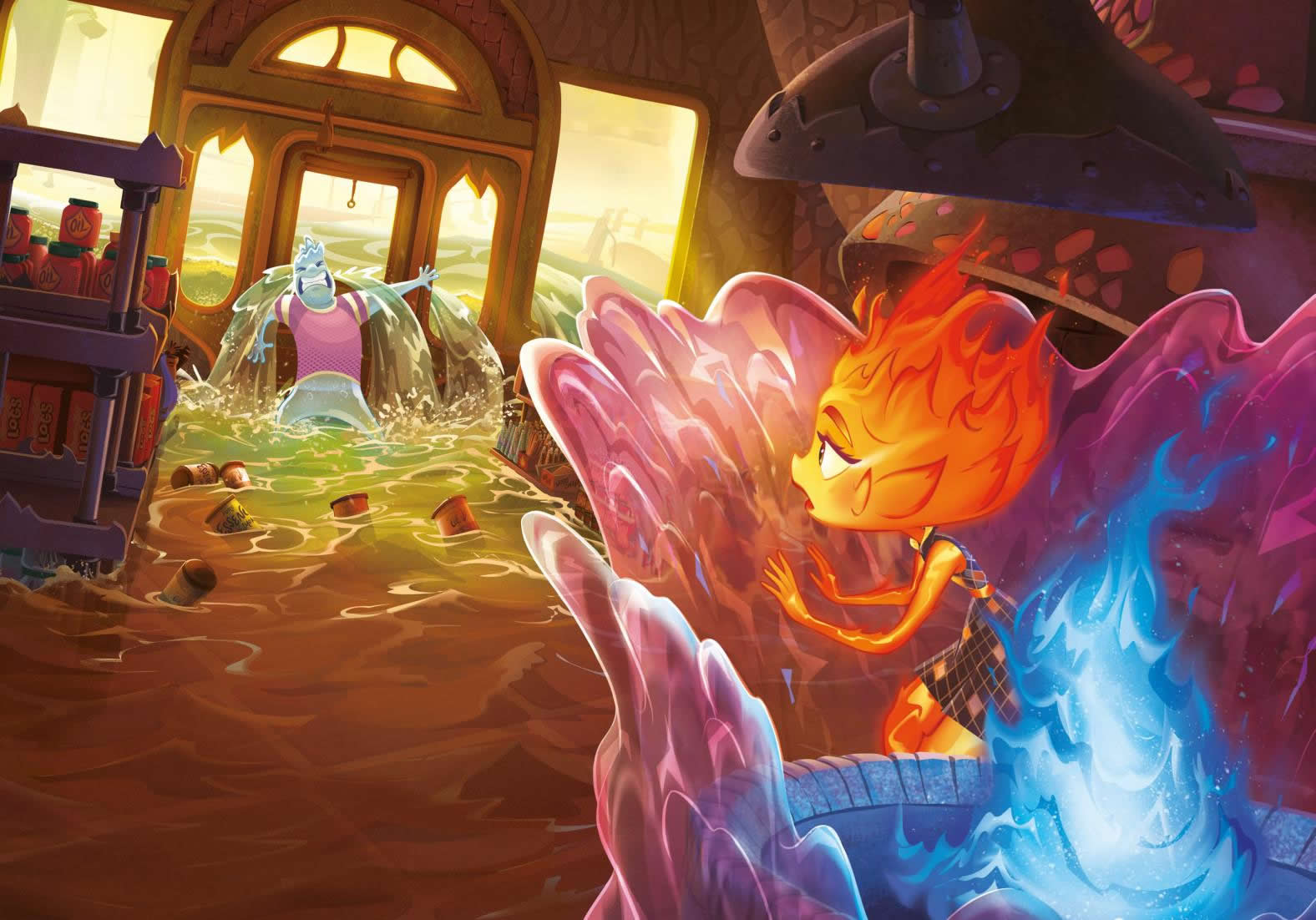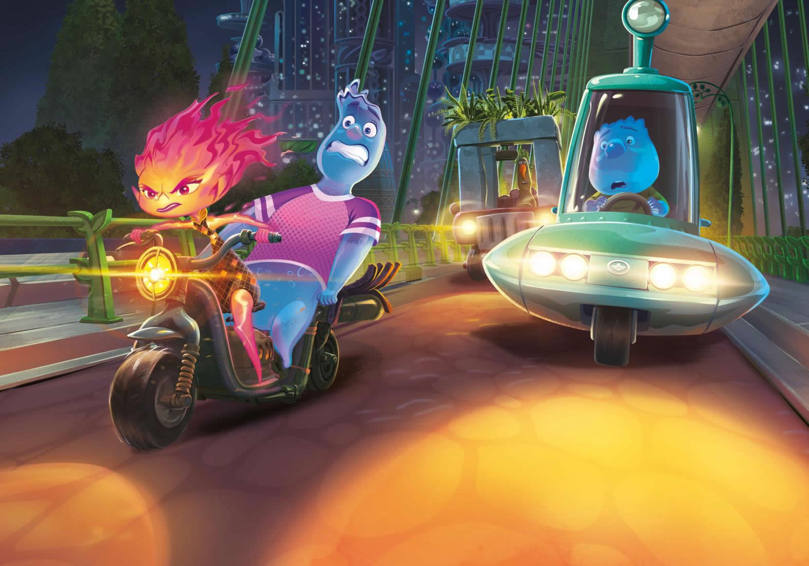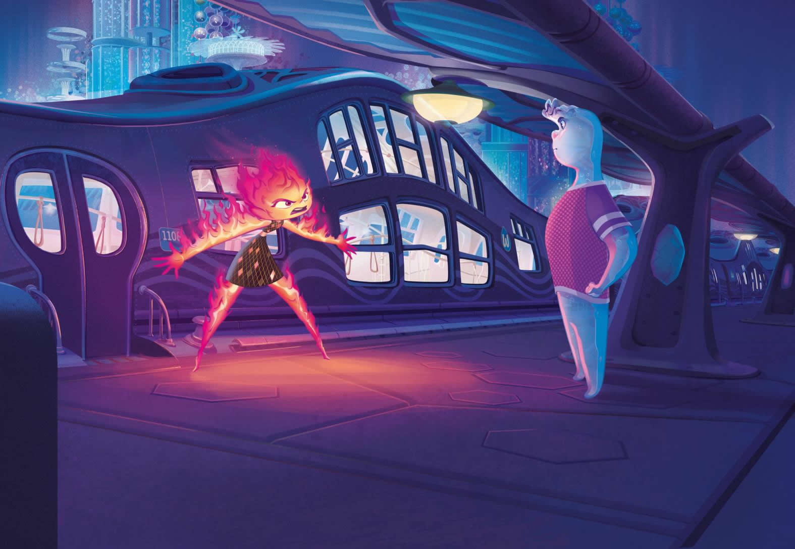 Para ella, todo en la ciudad era nuevo y un poco incómodo. Pero, a medida que iba pasando más tiempo con Nilo, empezó a relajarse y a divertirse. Sorprendió a otros elementos con sus habilidades únicas, se unió a un grupo de baile espontáneo y fue al cine. No sabía que Ciudad Elemento tuviera tanto que ofrecer.