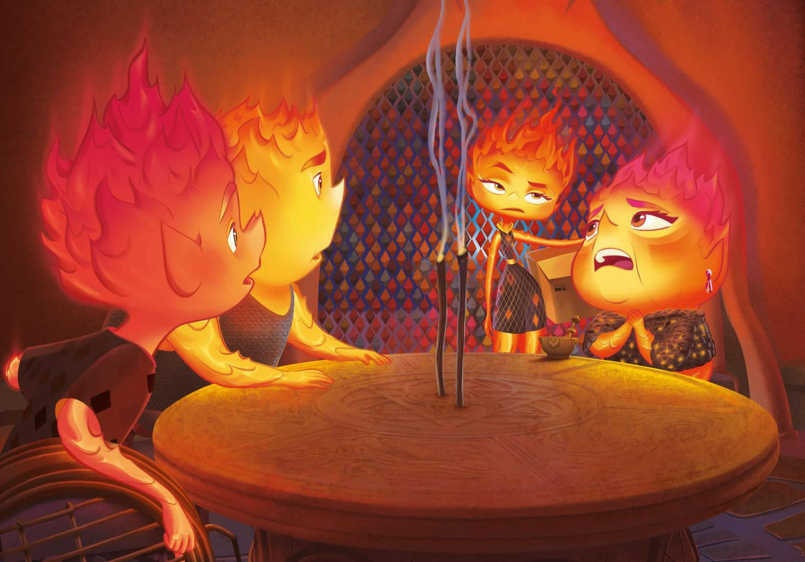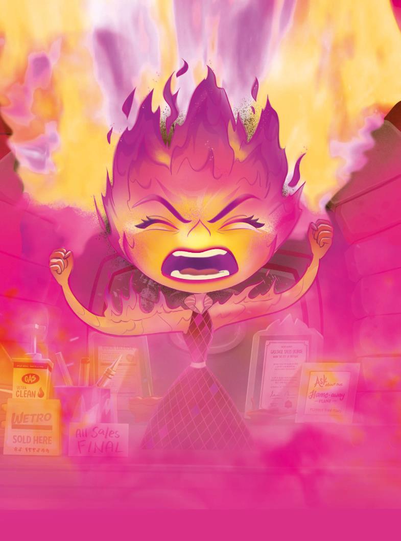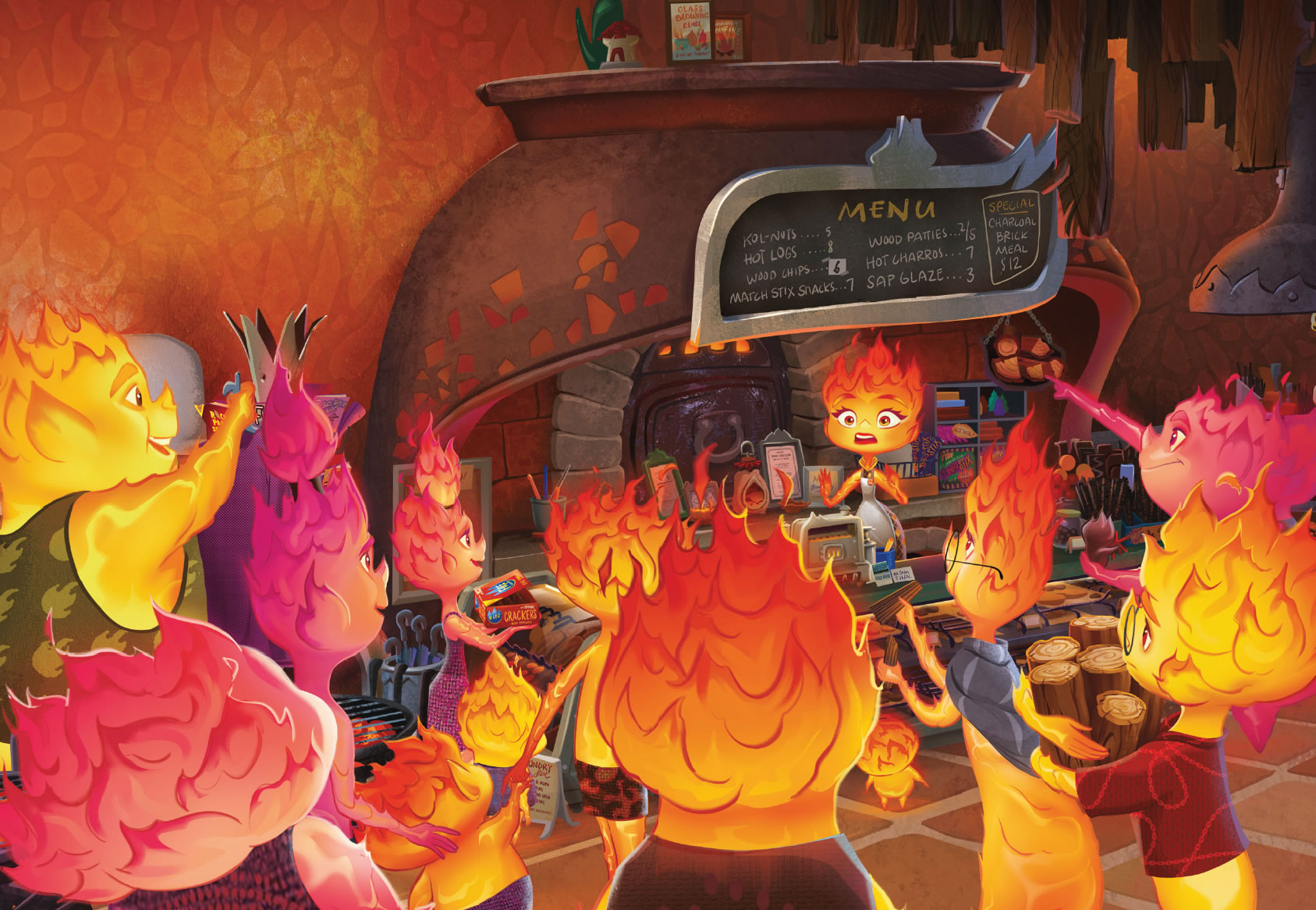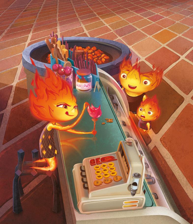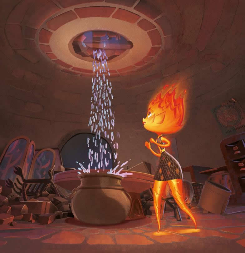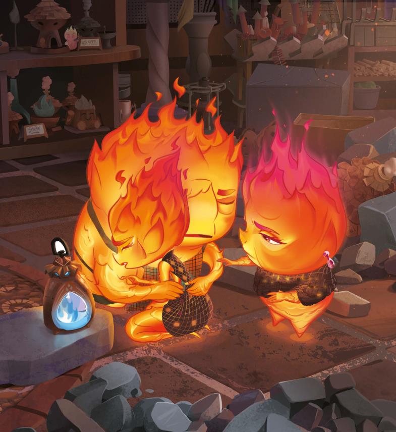 Cada vez llegaba más gente de fuego a Ciudad Elemento, y la tienda se acabó convirtiendo en el centro neurálgico de la comunidad de elementos de fuego. Candela, que trabajaba con su padre, tenía un don para esculpir.