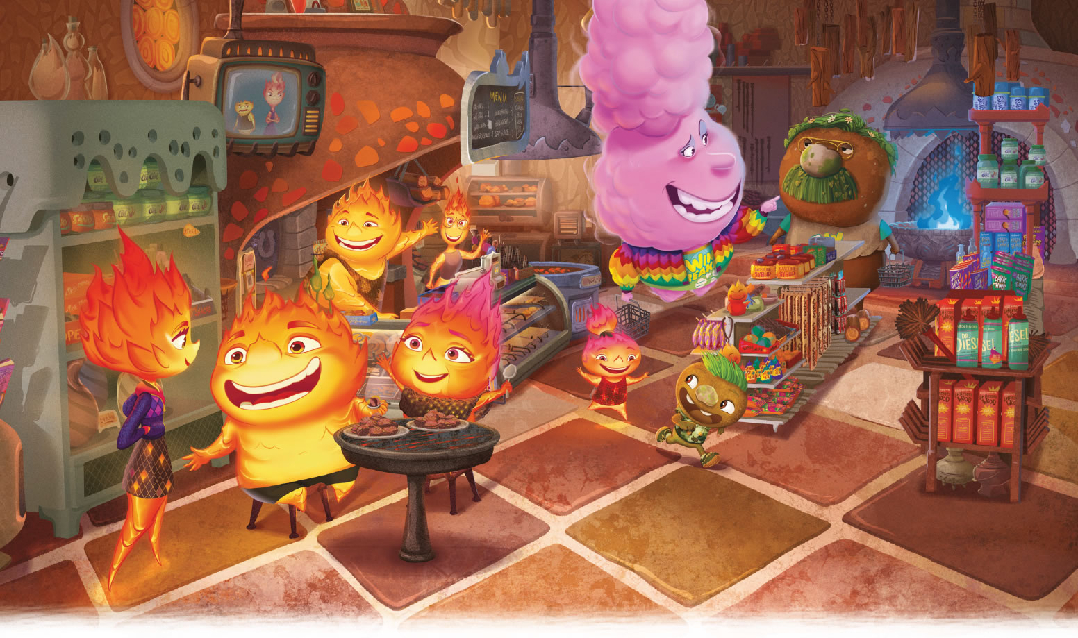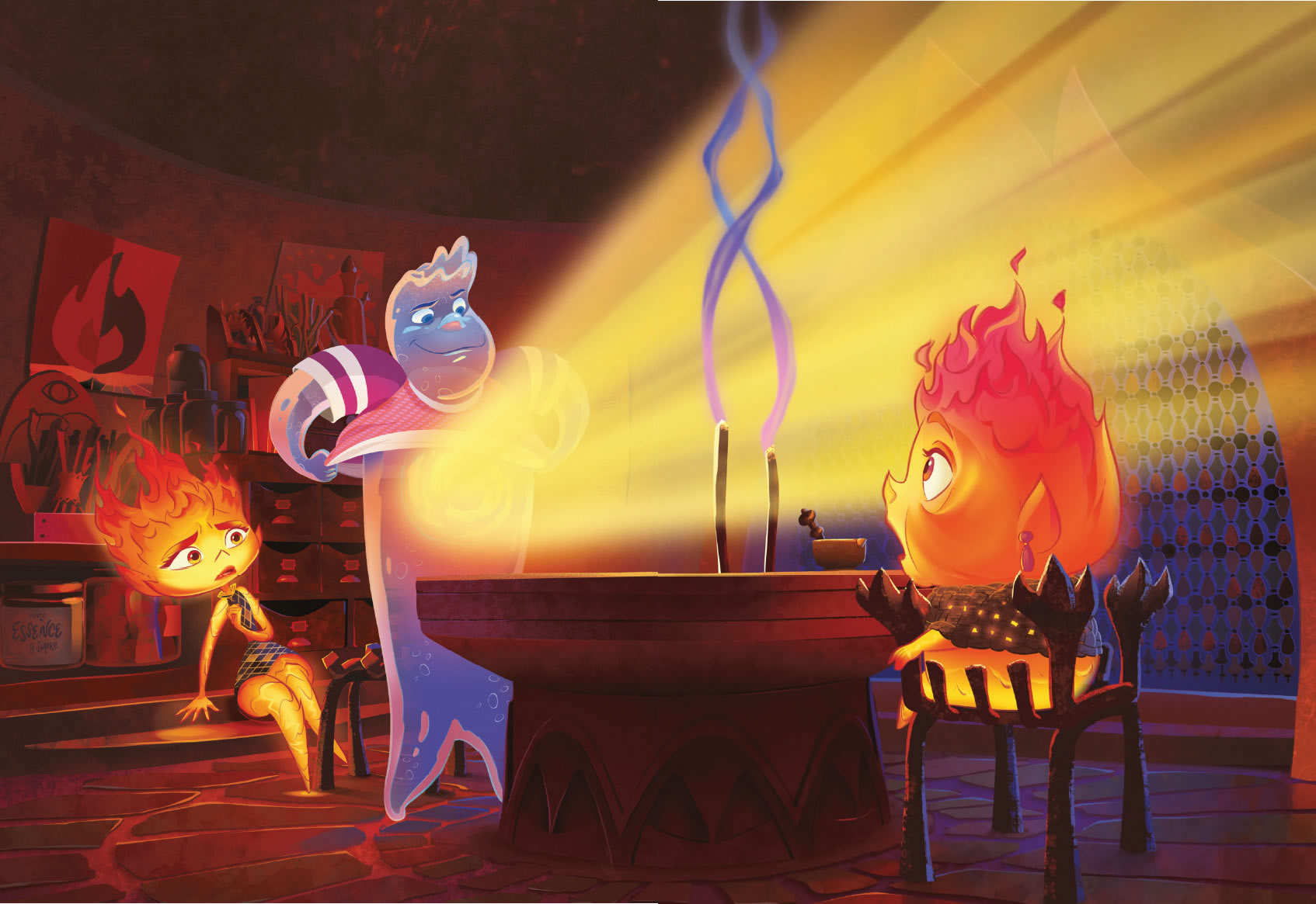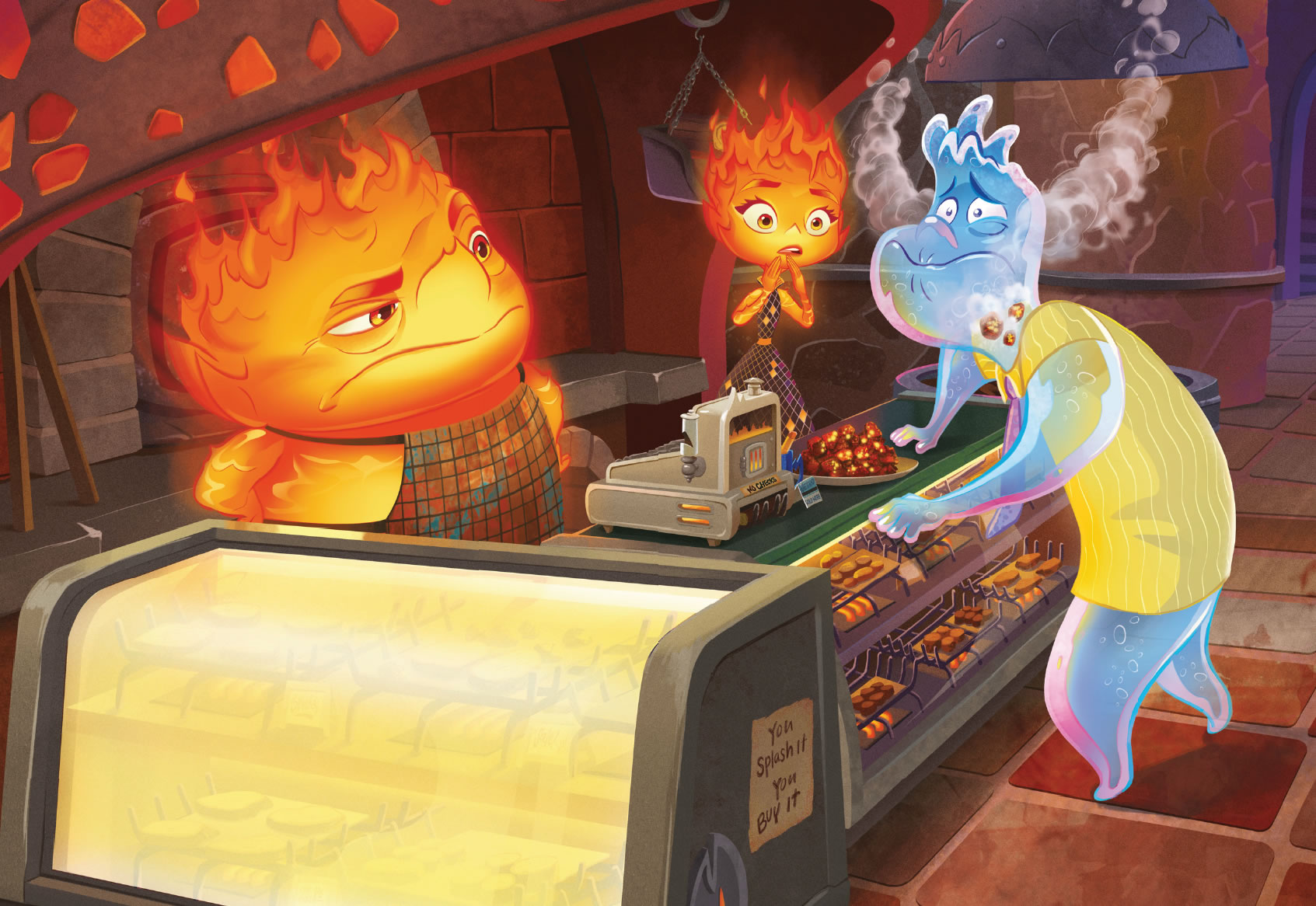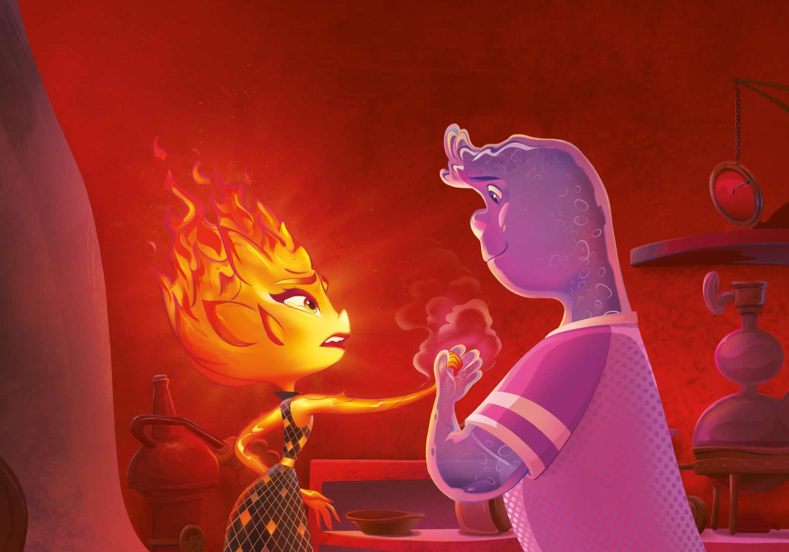 Cada vez llegaba más gente de fuego a Ciudad Elemento, y la tienda se acabó convirtiendo en el centro neurálgico de la comunidad de elementos de fuego. Candela, que trabajaba con su padre, tenía un don para esculpir.