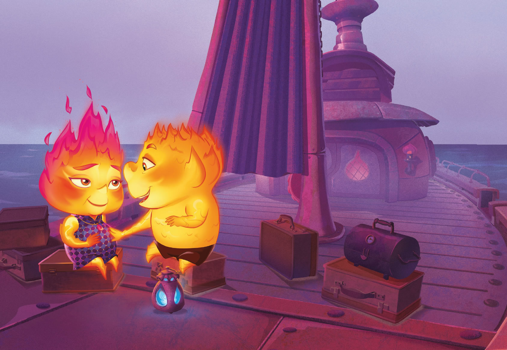 Lucio y Ceni Lumen, una joven pareja de elementos de fuego, emprendieron una larga travesía por mar hasta llegar a Ciudad Elemento.