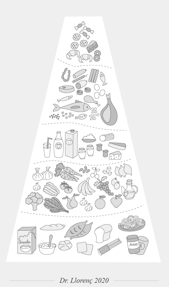 Lo importante es el modo de vida, la diaita. Y, por supuesto consumir diariamente los alimentos de la base de la pirámide de alimentos diarios. Habéis leído que en dicha base se encuentra el aceite de oliva: esa grasa deliciosa, sobre todo cuando es virgen extra, de primera prensada y, para mi gusto, de la variedad arbequina.