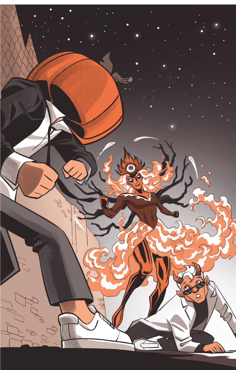 Y lo hizo. Un halo naranja se desplazó en zigzag entre los guardias, esquivándolos y pasando de largo. Era Jardred, que por un momento se había hecho tan veloz que prácticamente se teletransportó hasta el último carro y se subió al techo. Pero no fue lo suficientemente rápido.