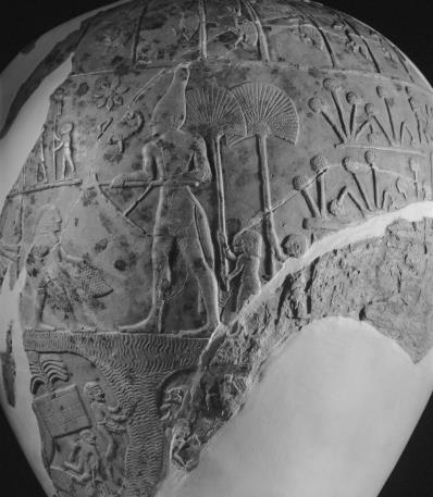 Ilustración 4.1. Maza ceremonial del Rey Escorpión. En esta maza se identifica al Rey Escorpión por el escorpión situado a la izquierda de su cabeza. Ashmolean Museum, Oxford. Fotografía: Werner Forman /Art Resource, NY.