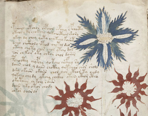 Por otra parte, a lo largo de la historia se han encontrado diferentes manuscritos que han tardado muchos años en ser legibles. Uno de los manuscritos de los que aún no se sabe su significado concreto o de qué tema trata es el llamado manuscrito Voynich, que consta de unas doscientas cuarenta páginas. Su nombre se debe al comerciante de libros antiguos que lo compró en Italia en 1912 y parece datar de principios del siglo XV. Actualmente se encuentra en la biblioteca de libros raros y manuscritos de la Universidad de Yale. Stephen Bax, profesor de lingüística aplicada de la Universidad de Bedfordshire presentó, en 2014, una investigación sobre este manuscrito, centrándose en la escritura y el lenguaje, proponiendo una decodificación de diez de las palabras y catorce de los signos y grupos. Sin embargo, poco más se sabe del mismo, excepto lo que se puede apreciar a simple vista (véase la Figura 1).