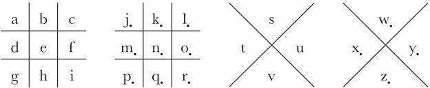 De hecho, los métodos de «sustitución simple», esto es, los que consisten en sustituir cada letra por un símbolo, más o menos extraño, o por otras letras o números, con la finalidad de que el mensaje no se revele a no ser que se conozca el diccionario de sustitución empleado, han sido una de las formas más extendidas de cifrado a lo largo de la historia. Estos métodos también se conocen como «monoalfabéticos», dado que solo se emplea un alfabeto para sustituir el alfabeto original, esto es, cada letra siempre se sustituye por el mismo símbolo durante el proceso de cifrado. A lo largo de este libro vamos a presentar algunos de los métodos más llamativos o curiosos, en particular cuando mencionemos ciertos personajes históricos de los que se sabe que emplearon dichos métodos y los describiremos con algo más de detalle.
