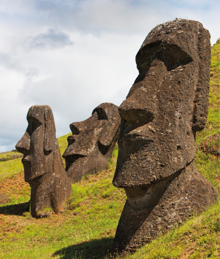 Moái, las gigantescas cabezas de piedra de la isla de Pascua.