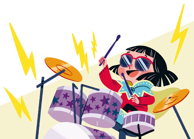 A pesar de la lluvia que caía fuera, mi amiga lucía unas absurdas gafas de sol. Aunque esta vez sí sé explicarte por qué. ¡Hacían juego con la moderna batería que estaba aporreando!