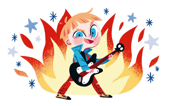 Claro que ahora tenía algo más peligroso aún: una enorme guitarra eléctrica.