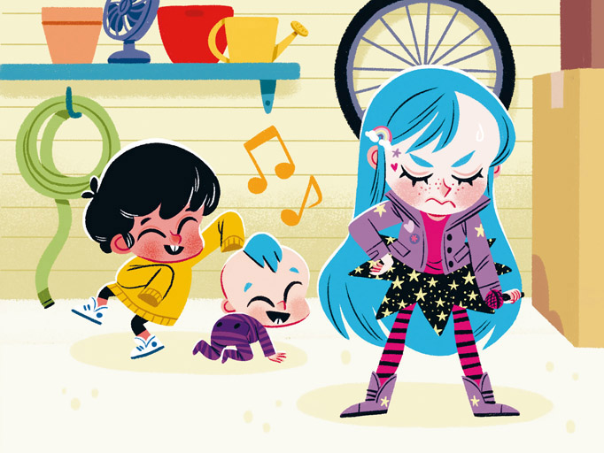 —¡Es culpa vuestra! —protestó Oliver, colorado—. ¡Mi guitarra suena genial!
