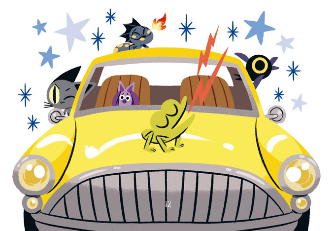 Mi gato nos echaba miradas de desaprobación. Cruela se tapaba los oídos con las alas. Mr. Rayo picoteaba con enfado las ventanillas. Dardo echaba nubes de humo desde el techo del coche.