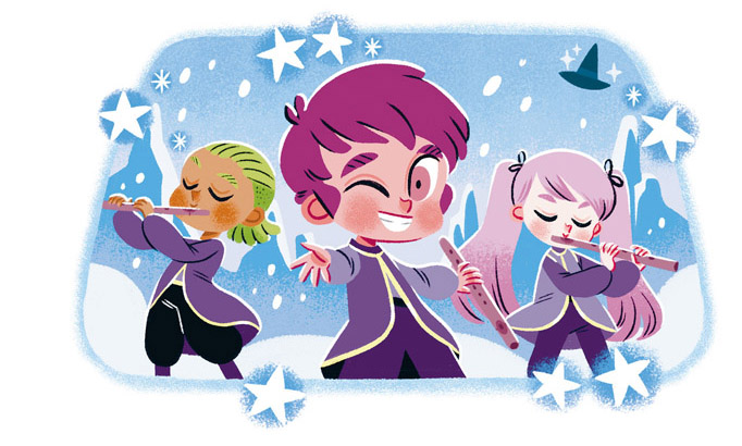 —¿Eres aprendiz de magia? —preguntó—. ¿Te gusta la música? ¡Entonces haz como nosotros y apúntate al Festival Invernal de Talento Musical!