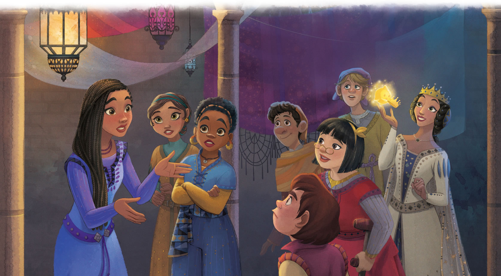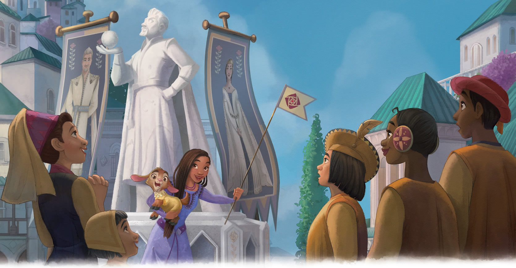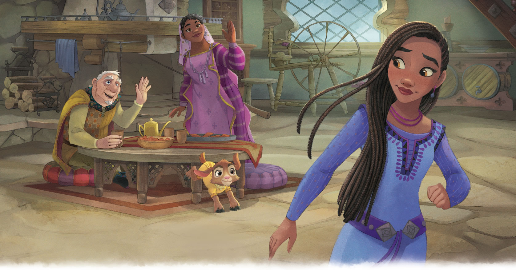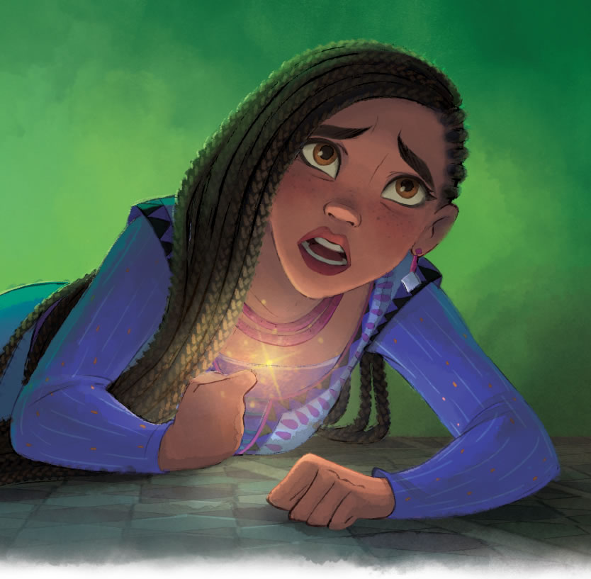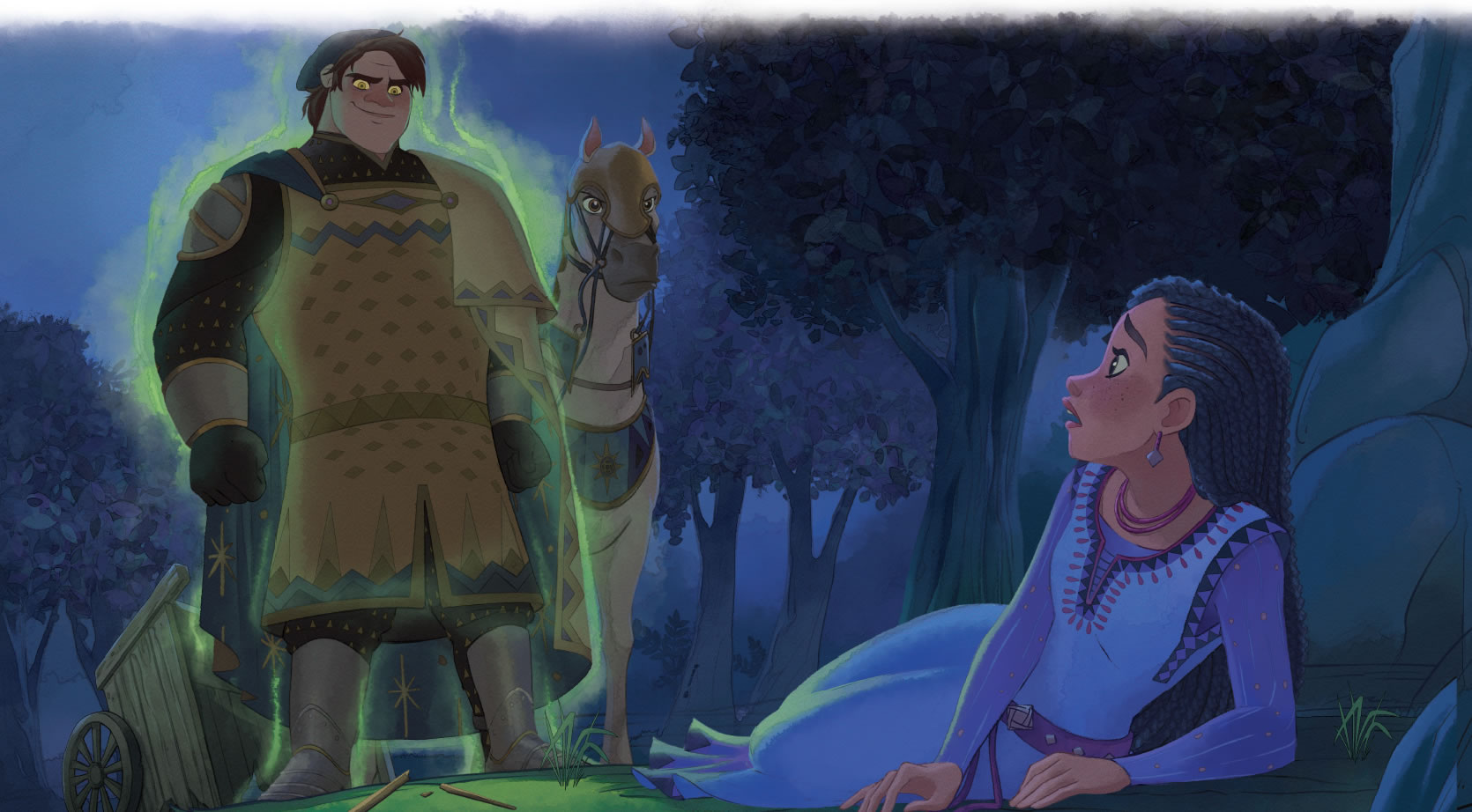 Asha miró al cielo nocturno y vio una estrella que brillaba más que las otras. Acompañada de Valentino, se subió al árbol en el que solía soñar con su padre. Mientras miraba aquella estrella tan bonita, la joven compartió su mayor sueño: que todo el mundo tuviera la oportunidad de hacer realidad sus deseos.
