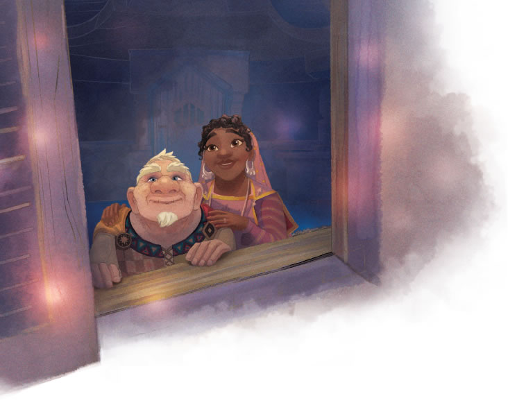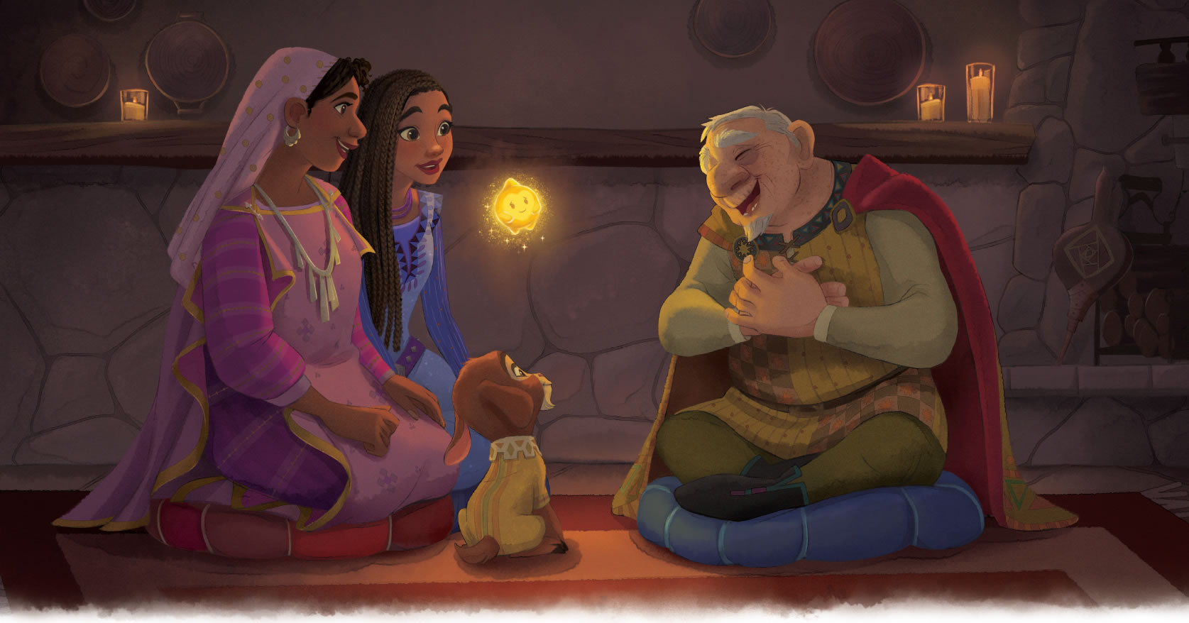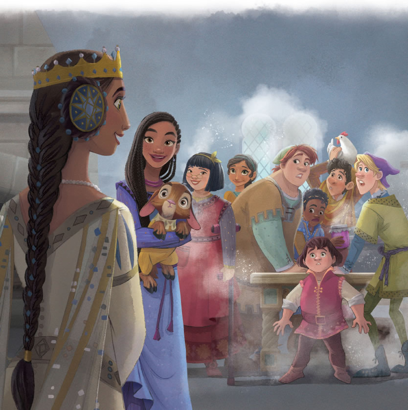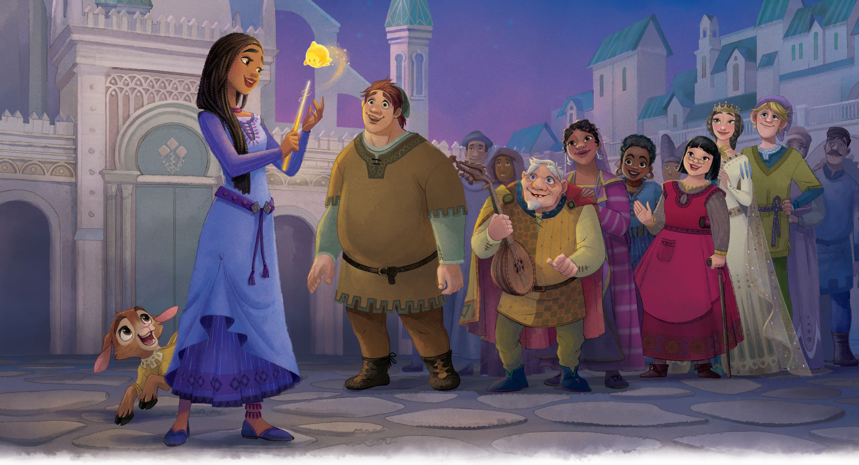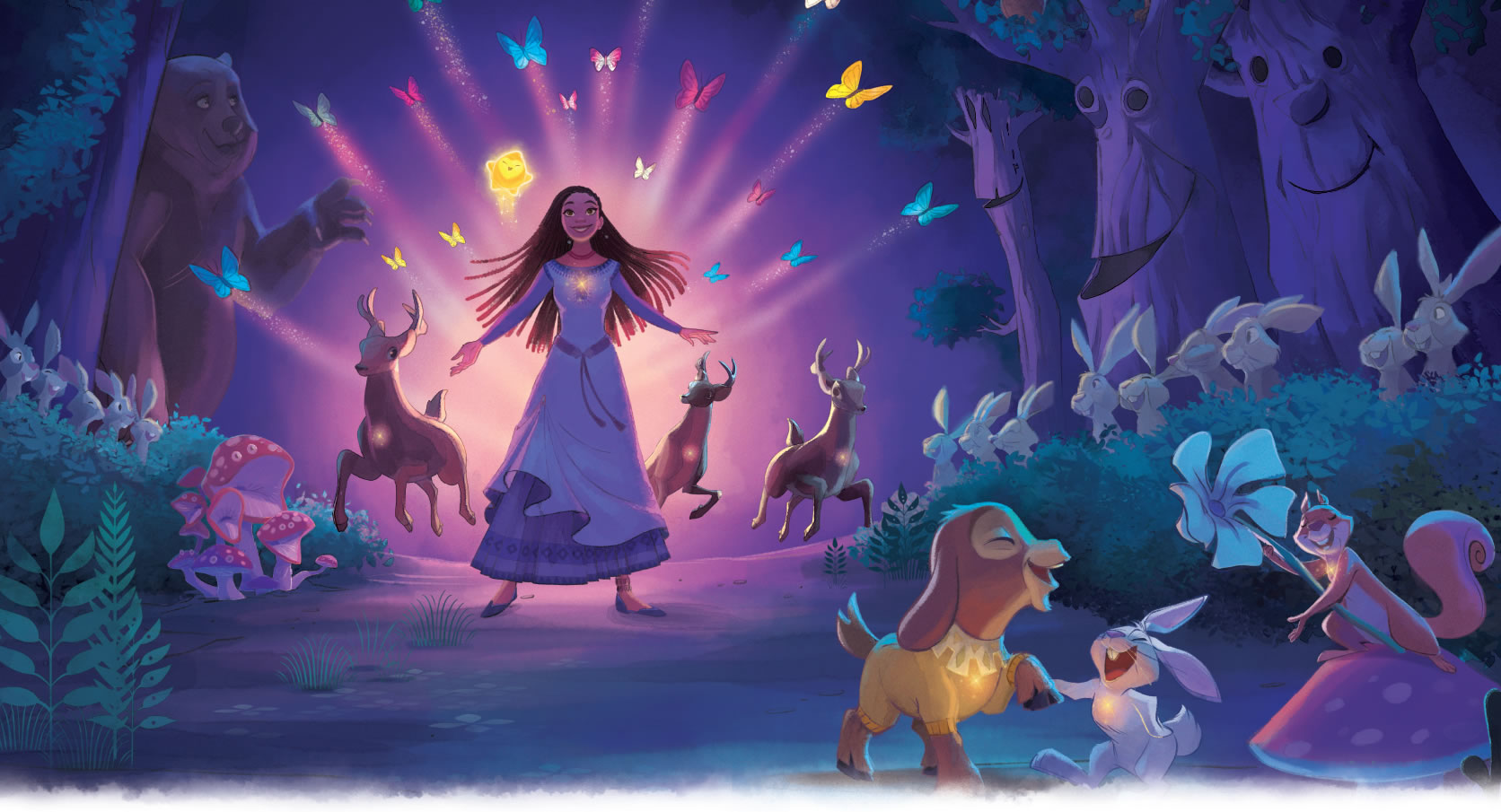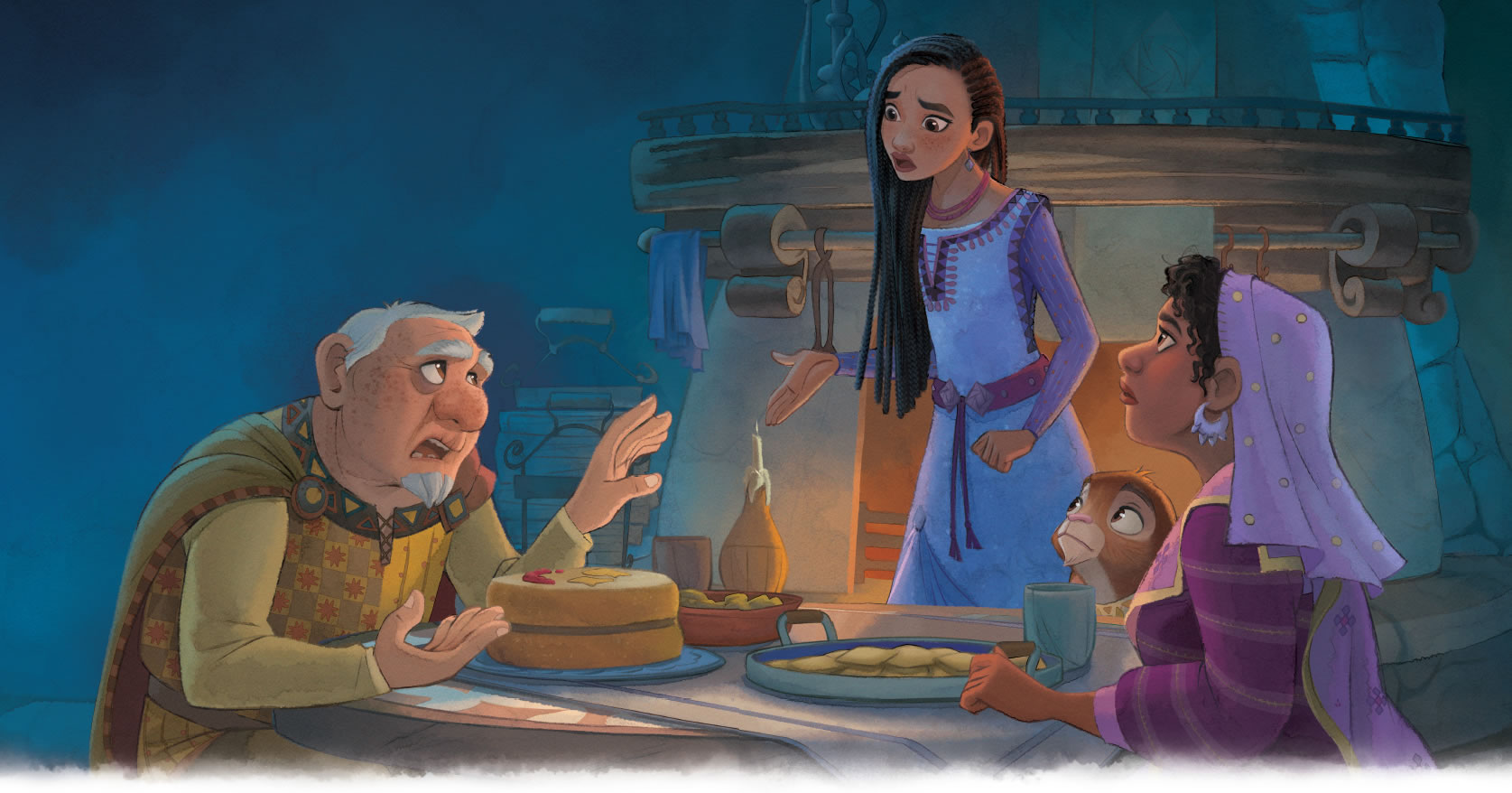 Asha miró al cielo nocturno y vio una estrella que brillaba más que las otras. Acompañada de Valentino, se subió al árbol en el que solía soñar con su padre. Mientras miraba aquella estrella tan bonita, la joven compartió su mayor sueño: que todo el mundo tuviera la oportunidad de hacer realidad sus deseos.