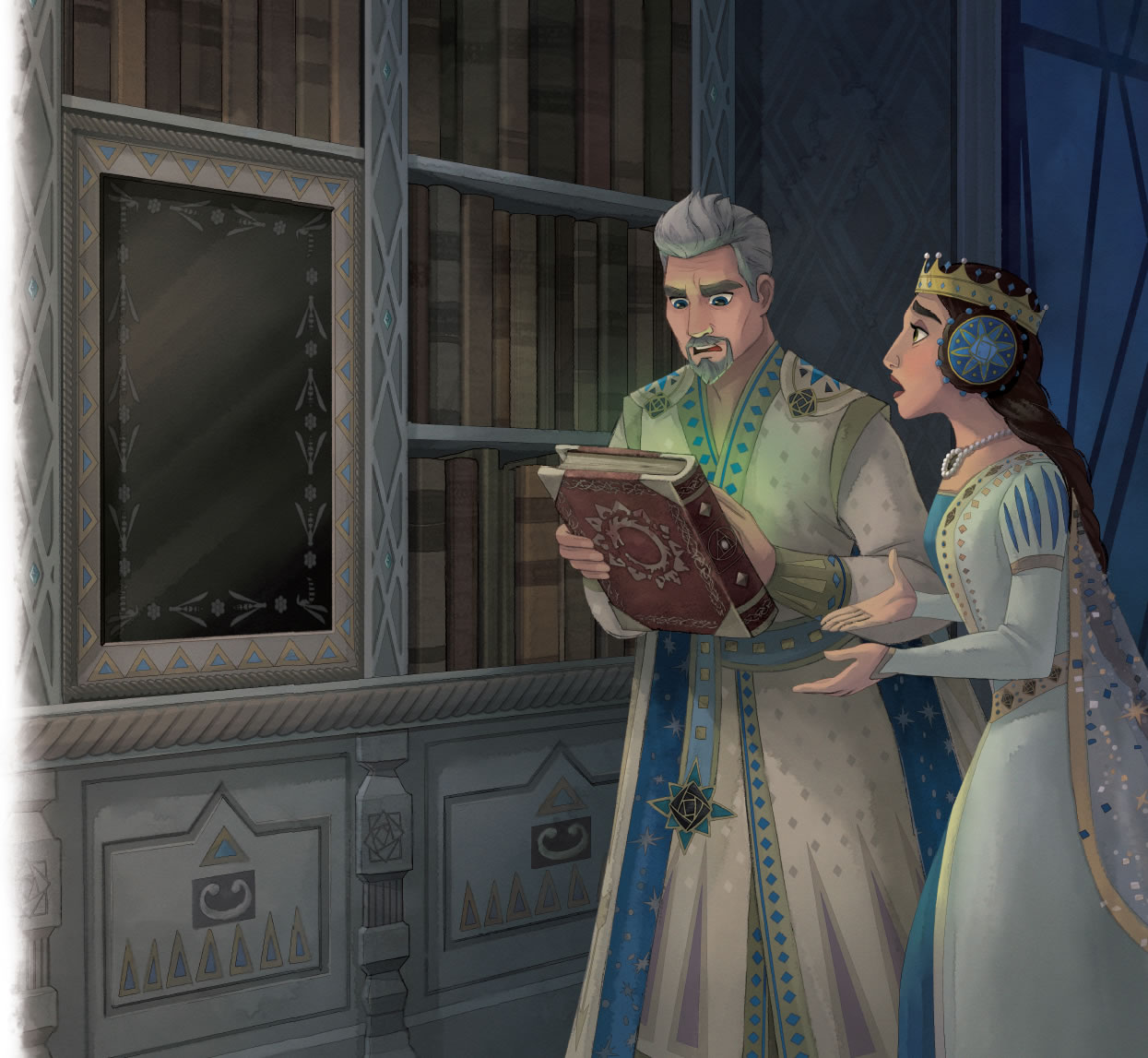 La reina le sugirió que hablara con el pueblo para encontrar respuestas, recordándole lo mucho que lo querían. El rey sonrió, agradecido por su consejo, y volvió a guardar el libro en la vitrina.