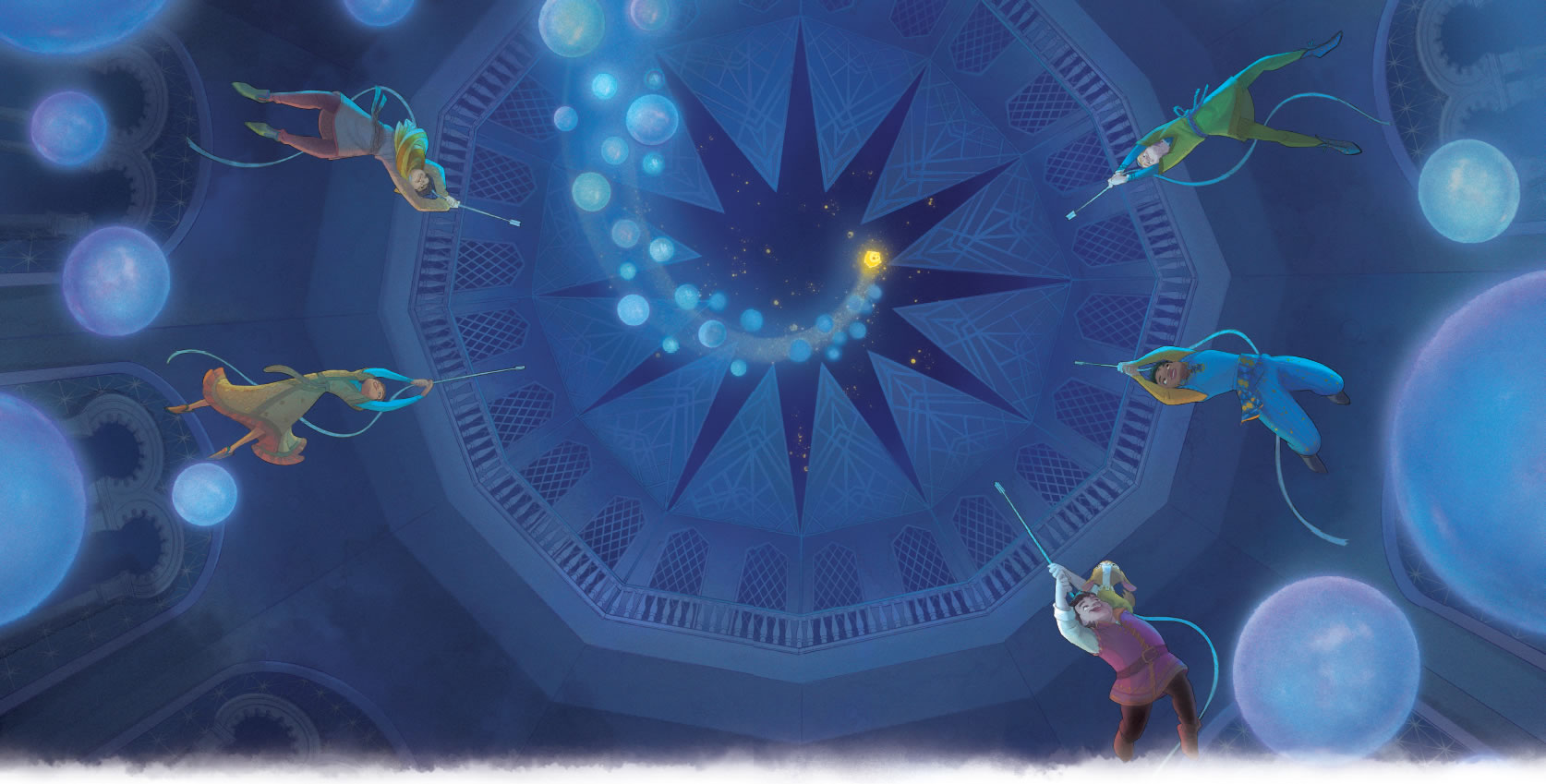 Estrella voló hacia arriba para guiar a las burbujas de los deseos hacia el techo abierto. Los deseos centellearon contra el cielo oscuro.