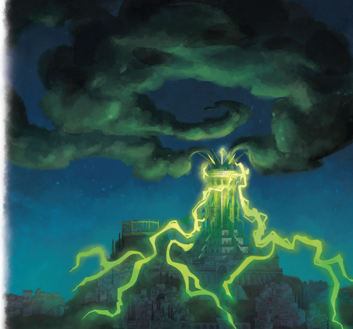 Del castillo emanaron unas espirales de luz verde que se extendieron por todo el patio. La luz se escurrió entre la multitud, envolviendo con sus garras a todo aquel que alcanzaba.
