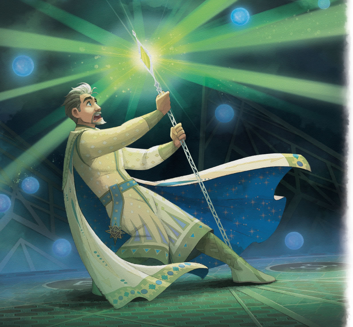 Cuando la luz dorada que irradiaban los corazones de los ciudadanos alcanzó a Magnífico, su cetro empezó a sacudirse. Él intentó estabilizarlo, pero se le escapó de las manos, como si Estrella lo controlara desde el interior.