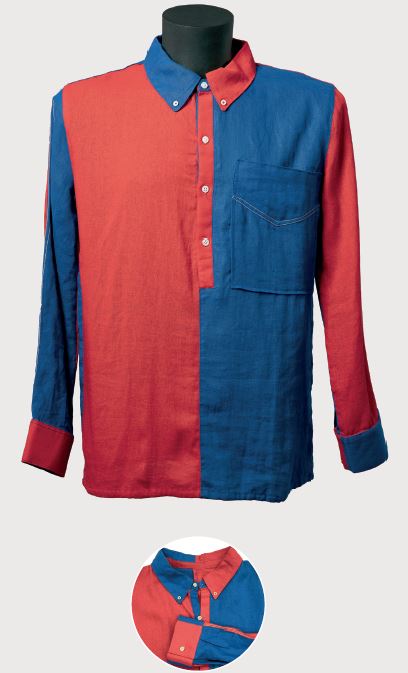 Com era habitual en aquella època, les samarretes eren de cotó pur tenyit i sovint les tintades eren d’intensitats diferents. En aquest cas, va quedar una peça de colors molt suaus, menys foscos del que era habitual i a més, tenia un escut propi de grans dimensions. Disposava de quatre traus a cada banda de l’obertura del coll, els cordons eren blaus i tenia una solapa prominent.