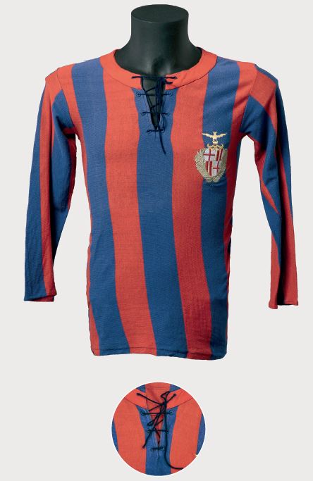 L’alineació de l’amistós disputat l’11 de febrer del 1923 contra el Servette FC suís, que va acabar amb victòria blaugrana per 4-2, on alguns jugadors duien aquest model de samarreta. De peu, Luis Blanco Peyrona.