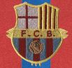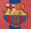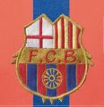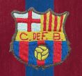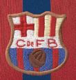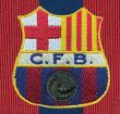Bàsicament, aquest disseny s’assemblava molt als dos anteriors. El teixit utilitzat també era cotó tenyit a mà, i els pantalons i les mitges es mantenien igual, però sembla ser que es va fer servir en menys ocasions i només la van portar alguns jugadors, com Bru i Quirante. La gran peculiaritat d’aquesta peça era que incorporava, per primera vegada, l’escut que actualment tots coneixem, encara que era de grans dimensions i d’estil modernista per raó, òbviament, de l’època en que es va crear. Es va fer servir a les temporades 1909-1910 i 1910-1911, aleatòriament, en partits amistosos i probablement durant els Campionats de Catalunya. Aquest model de samarreta tan especial, que lluïa per primera vegada l’escut institucional, va trigar noranta-quatre anys en repetir el disseny amb unes franges tan estretes. Va ser a la temporada 2005-2006, quan el Samba Team de Ronaldinho i companyia van conquerir la Supercopa, la Lliga i la Champions en una temporada per emmarcar.
