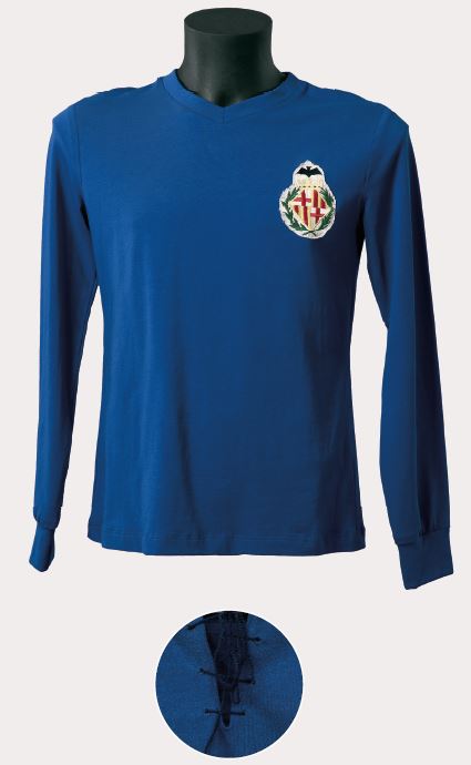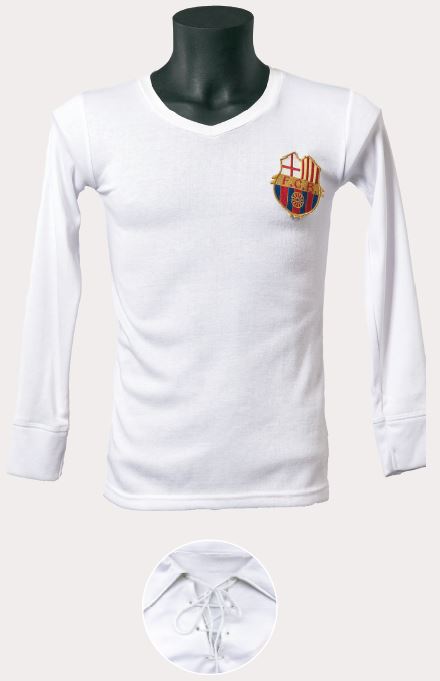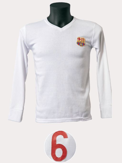 Aquesta samarreta d’estil senzill no portava ni solapa ni escut i s’identificava per la posició dels sis traus, diferent de qualsevol altra samarreta anterior o posterior. Era una peça austera de tons més suavitzats, i també de cotó fi. Els pantalons eren negres o de color blau fosc, segons el jugador; les mitges, negres i, habitualment, amb dues franges blanques a la vora.