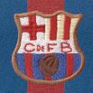 Aquest va ser el primer equip que Meyba va confeccionar per als partits en què el Barça jugava com a visitant i hi havia una gran coincidència de colors amb el rival. La samarreta era de teixit molt fi, setinat, i una franja blaugrana vertical travessava el logotip de la marca. A les espatlles s’estenia la mítica sanefa blaugrana i el dorsal anava serigrafiat amb pintura de color blau fosc. Els pantalons i les mitges eren de color blau, tret d’alguna excepció.
