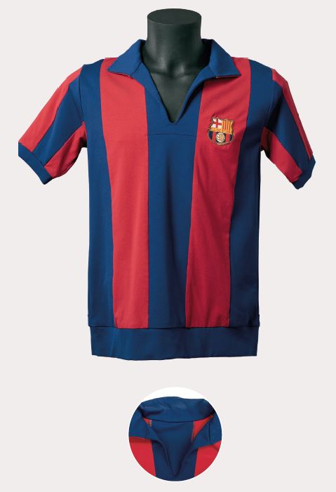 Aquesta és una de les samarretes més extravagants de totes les que s’han vist en la història del club. Estava confeccionada amb un teixit molt gruixut de punt llis, el tacte devia ser d’allò més rústic i els colors eren foscos; però el més impactant d’aquest model era la seva enorme solapa en forma de ratpenat, que li donava un aspecte exageradament insòlit. La samarreta també se cenyia amb una franja elàstica blau fosc, com en el model anterior.