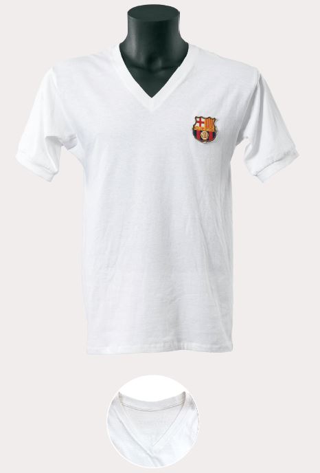Aquest model era el mateix que l’anterior, de cotó, però amb màniga curta i coll en punta. Es va fer servir a les temporades 1970-1971 i 1971-1972. Va ser el dotzè model blanc de la història del club i, en l’àmbit esportiu, en va rebre una de freda i una de calenta. Es va portar a Bilbao a la temporada 1970-1971 davant dels lleons, amb derrota per 1-0 en els vuitens de final de la Copa, encara que per sort l’equip va remuntar a la tornada, ja amb la samarreta blaugrana.
