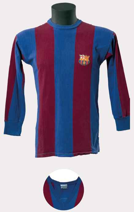 Per al torneig català, el Barça va fer servir diferents tipus de samarretes blaugranes; van arribar a disposar de fins a sis models diferents, entre els quals aquest, dut amb seguretat per jugadors com Alcántara o Samitier. Es va guanyar el Campionat de Catalunya 1923-1924 d’una manera històrica, perquè es van derrotar tots els rivals, amb un Samitier desfermat com a golejador, autor de catorze gols en deu partits.