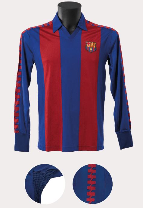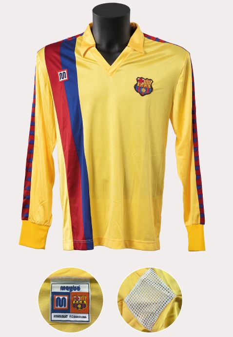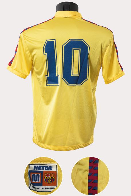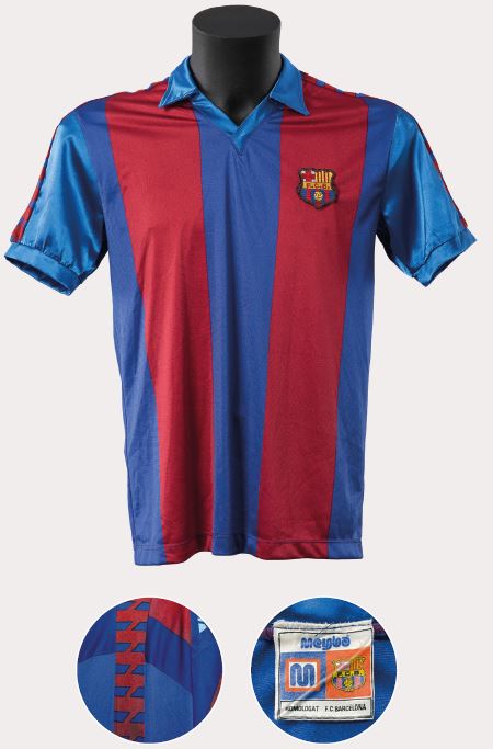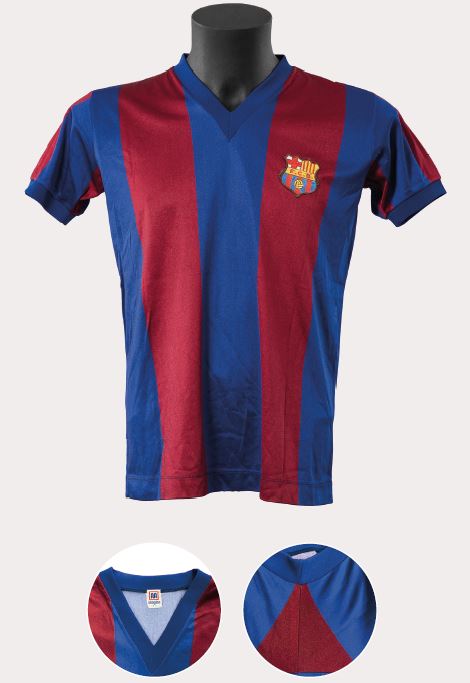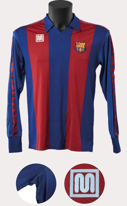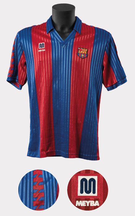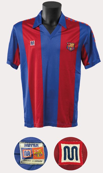 Aquesta samarreta és el model clàssic de Meyba que s’ha mantingut en la memòria col·lectiva culer, segurament perquè va ser el que més va perdurar en el temps, fins a vuit anys, i amb el que es van aconseguir més títols, fins a vuit. El tret de sortida d’aquest disseny definitiu es podria situar a la final de Copa de 1983, en la qual el Barcelona de Maradona va vèncer el Reial Madrid per 2-1. Va ser una samarreta que va tenir diferents teixits segons l’any i segons si era de màniga curta o llarga, d’estiu o d’hivern. La van lluir grans jugadors com el mateix argentí, Schuster o Lineker, Marcos Alonso o Tente Sánchez, i va marcar tota una generació en la dècada del 1980.