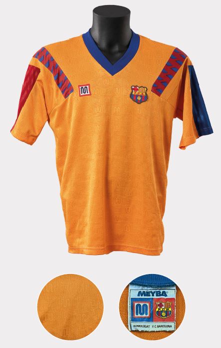 Aquest va ser l’últim disseny blaugrana de Meyba. Després de set anys amb un únic model, es va adequar la samarreta als nous temps. Per això, es va canviar el teixit, més brillant i amb multitud de franges fines que reflectien llampades blaugrana. El logotip del pit va passar de cosit a imprès i amb el nom de la marca sota el logotip. El dorsal també va quedar corporativitzat. Aquesta peça va quedar invicta a la Lliga: dues temporades, dos títols. Amb aquesta samarreta es va iniciar el millor cicle del Dream Team. En el record culer queden grans moments com la golejada a la Catedral per 0-6, amb hat-trick de Stòitxkov, durant la temporada 1990-1991, o bé la victòria amb el Madrid al Camp Nou, amb el famós autogol de Spasić. En la temporada 1991-1992 també es van aconseguir grans efemèrides, com la Supercopa contra l’Atlètic de Madrid per un global de 2-1 (0-1 i 1-1), l’espectacular 0-4 de gols i joc a Riazor contra el Superdepor o el 2-0 enfront de l’Athletic de Bilbao a l’última jornada de Lliga que, combinada amb la derrota del Madrid a Tenerife, donava al FC Barcelona el segon títol de Lliga consecutiu.