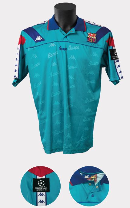 Aquesta samarreta va canviar alguns detalls de la que era habitual en la lligueta per als partits de Champions. Presentava un blau més lilós i un vermell més rosat, tenia un coll diferent, així com el pegat de la competició, que era platejat i negre. El dorsal anava sublimat amb el logotip de la marca a la part inferior. Aquesta peça va ser l’èxtasi de les samarretes Kappa europees, tant en color com en disseny, insuperable. Aquest model tan vistós estava destinat a fer-se servir a la fase final de la Champions League i es va estrenar en els quarts de final amb el PSG de Weha, Ginola i companyia al Camp Nou, amb empat a un gol. El destí va fer que el Barça no passés de ronda, perquè vivíem els darrers espeternecs del Dream Team de Cruyff, però hauria estat extraordinari poder guanyar la Champions League amb aquesta exquisida samarreta.