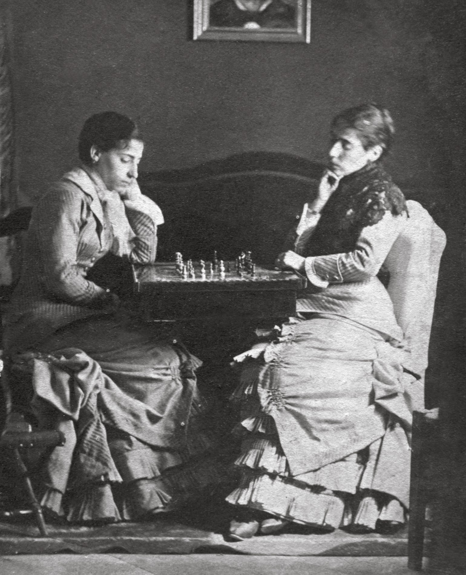 Las hermanas de Cajal, Paula y Jorja, jugando al ajedrez. Fotografía de Santiago Ramón y Cajal.
