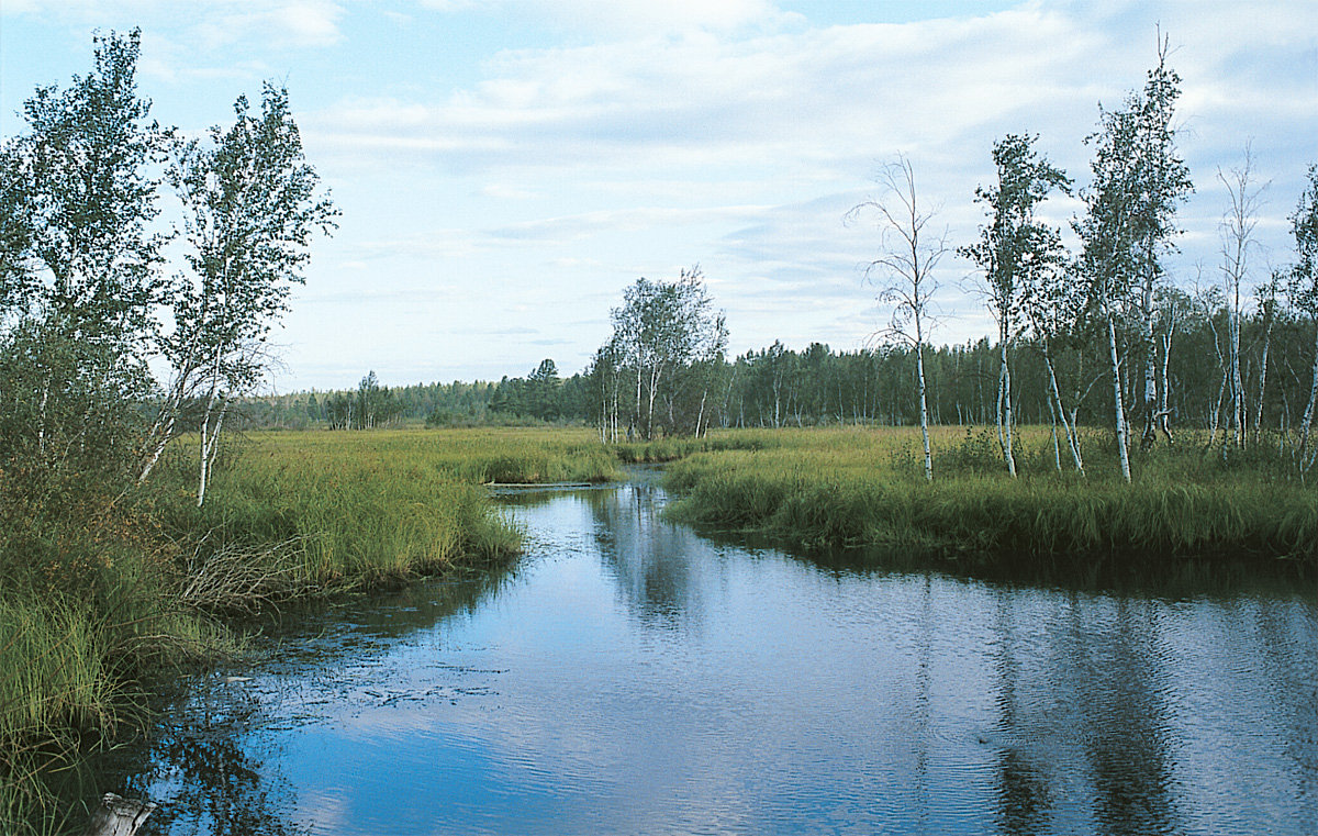 Comprising mostly conifers (larch, pine and Siberian cedar) but also in the north birch, willow and aspen, in the south and west deciduous species, the taiga forests are home to an important group of larger predatory animals (bears, wolverines, wolves and lynxes), foraging omnivores (foxes, sables, polecats, weasels, ermines, mink and martens), ungulates (deer and elk) and birds (capercaillies, partridges, woodpeckers and nutcrackers). Winters in this region are very long and very cold. Summers, however, can be warm in the central part of the region where the annual range of temperatures can be as wide as 100 degrees on the Celsius scale (180 degrees on the Fahrenheit scale) – propitious times for the insects, especially for the mosquitoes, midges and flies for which the tundra, with its multitudinous marshes and lakes, has been the ideal breeding-ground.