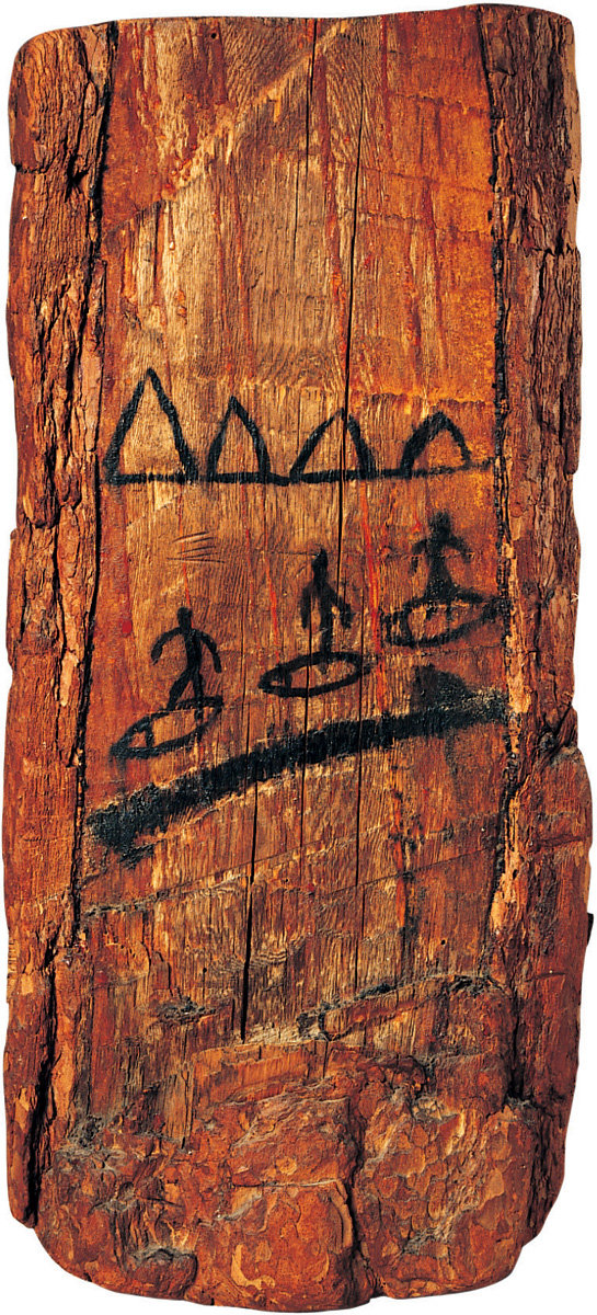 51. Pictographic letter. Evenki, Yenisey Province, 1908. Wood (pine), charcoal, length: 59 cm, width: 26 cm.