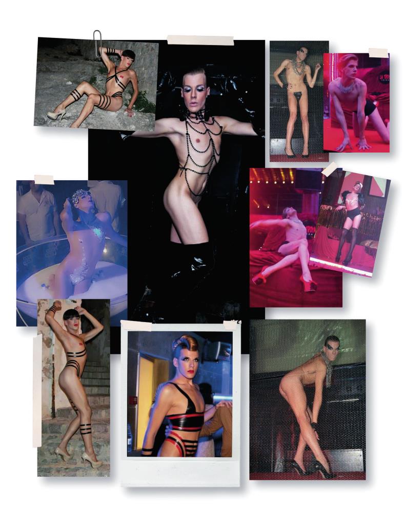 No sé muy bien cómo, yo caía en gracia. Como mis compañeras me hacían bullying, me rodeé de gente mayor, que es lo que me pasa siempre (no te olvides de mi afición por las sobremesas). Hubo un grupito que me acogió, algo que por supuesto les dio aún más rabia a esas envidiosas. Mi sueño era estar en Amnesia bailando delante de 5.000 personas, en tanga y enfundado en unas botas, con bien de strass y tocados de plumas. Me sentía sexy y libre. Ese mismo invierno La Troya me ofreció hacer un tour por Bruselas, Italia, París, Madrid y Barcelona (algo que solo hacen las veteranas, y era mi primer año).